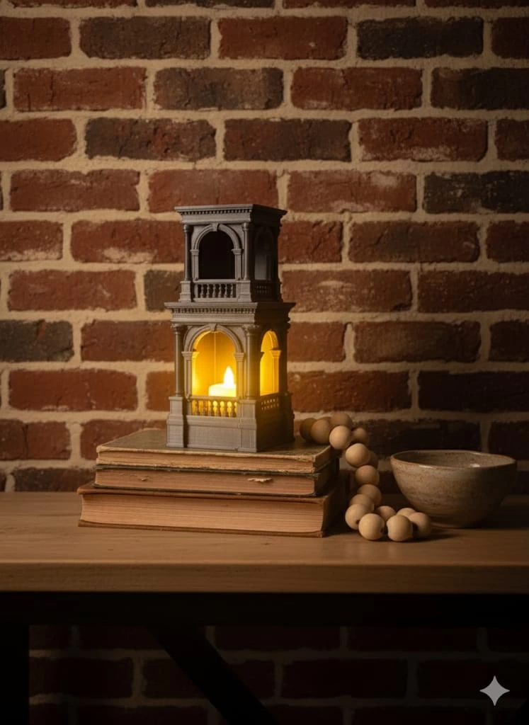 2 Katlı Kule Figür Dekoratif 18 x 9 cm- Led Mum Hediye
