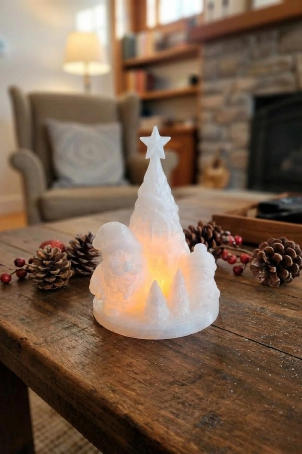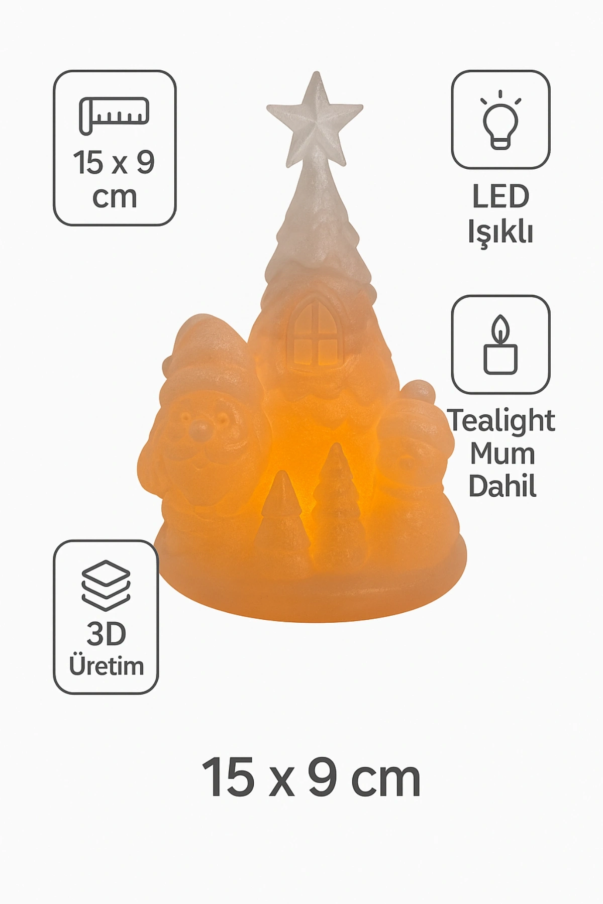 3D Yılbaşı Dekor Seti 3’lü Çam Ağacı (16 x 16 cm) ve Kurdela Mumluk (8 x 7 cm), Tealight Mumlar & Periled Dahil