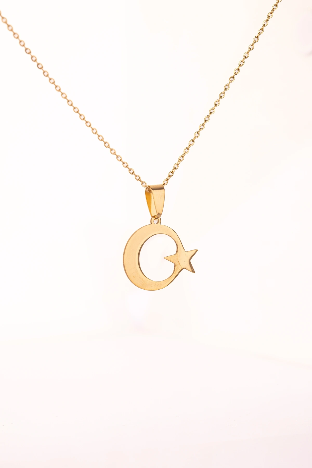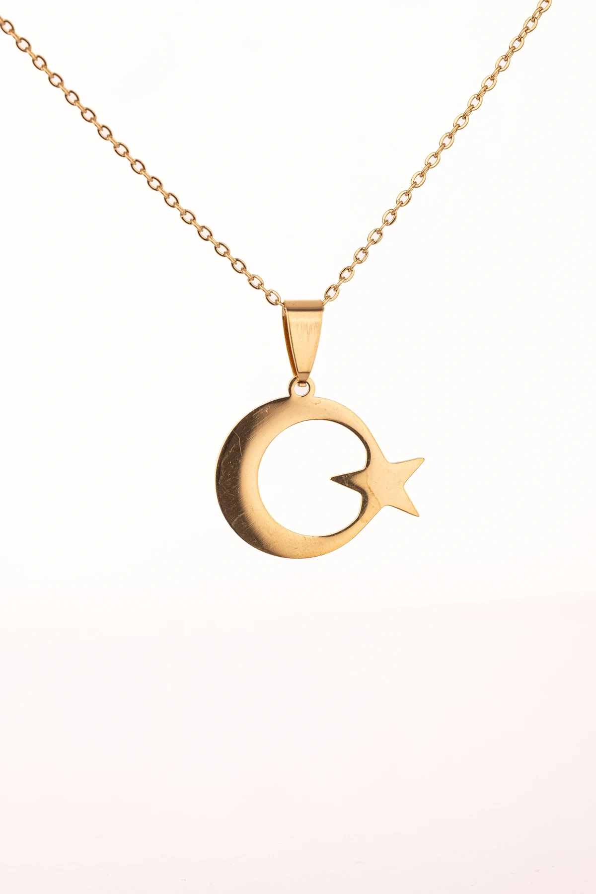 Altın Renk Ay Yıldız Çelik Kolye Kararmaz Paslanmaz Çelik Anlamlı ve Şık (Unisex)