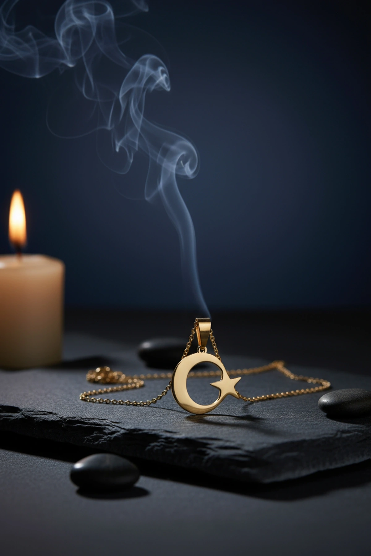 Zarafeti, anlamı ve dayanıklılığı bir araya getiren bu özel kadın altın ay yıldız kolye, sade ama etkileyici tasarımıyla dikkat çeker.