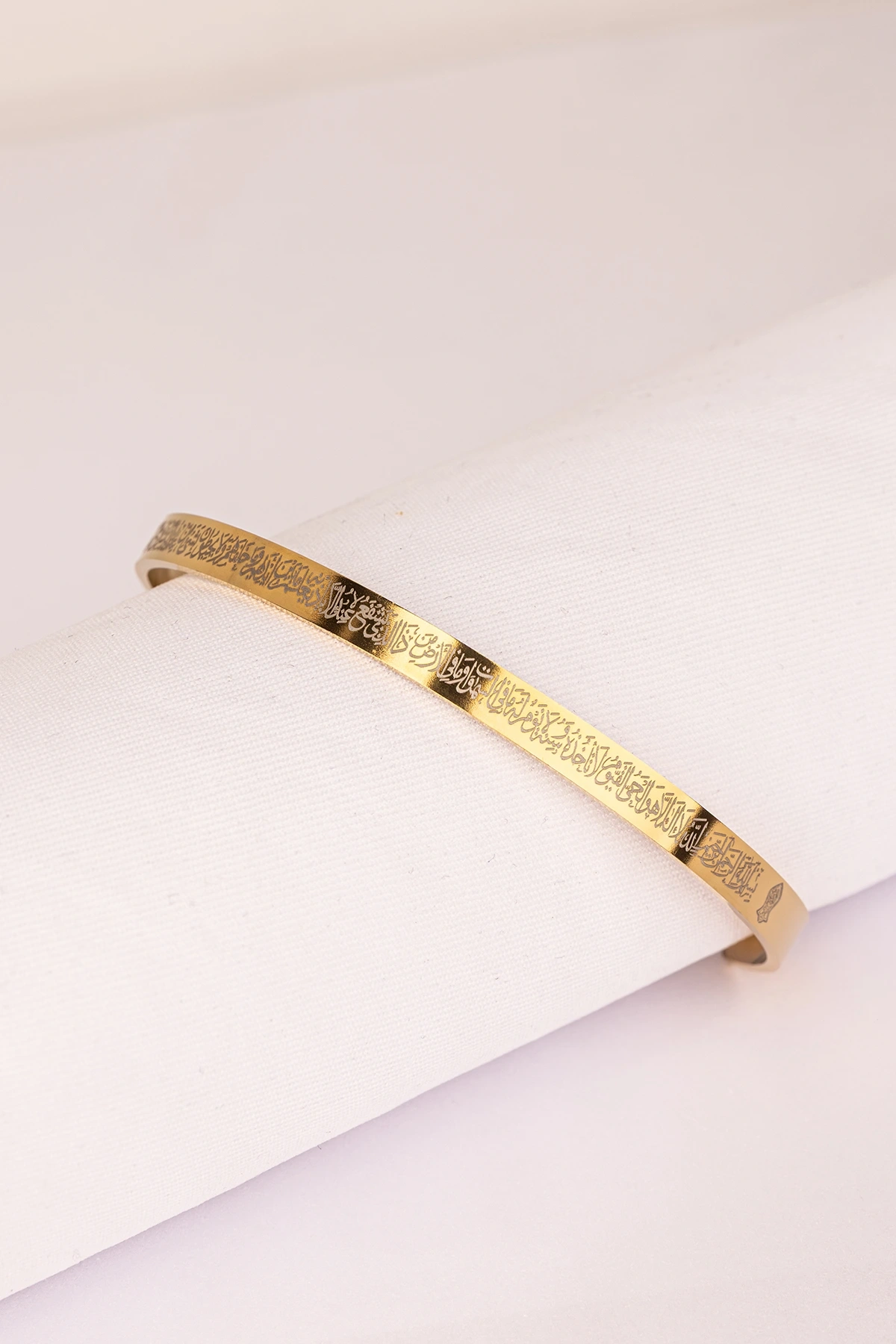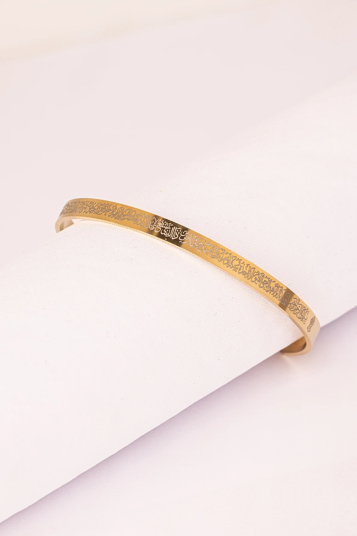 Altın Renk Unisex Ayetel Kürsi Nalı Şerif Yazılı Çelik Bileklik Ayarlanabilir Paslanmaz Kararmaz