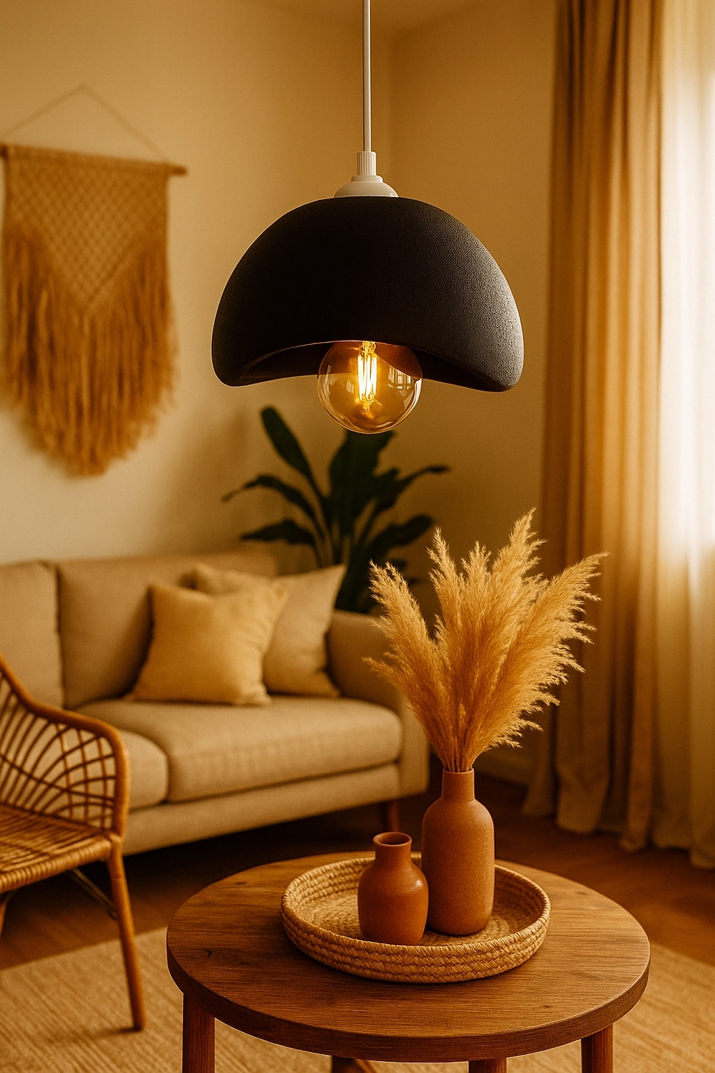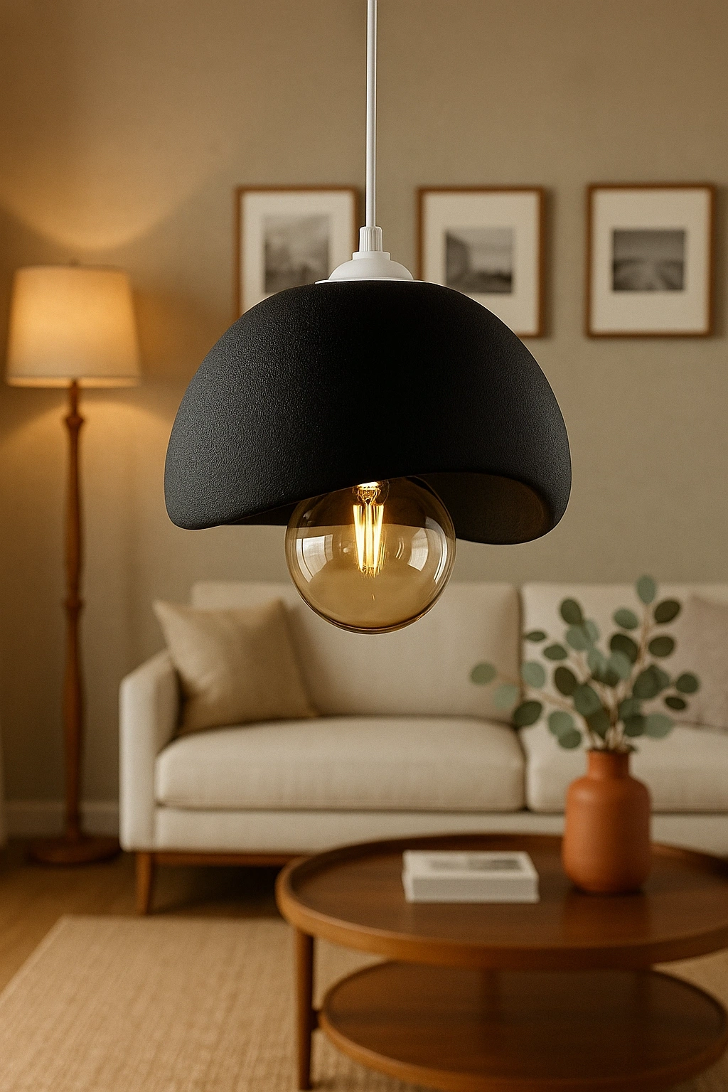 Beton Görünümlü İskandinav Avize Siyah