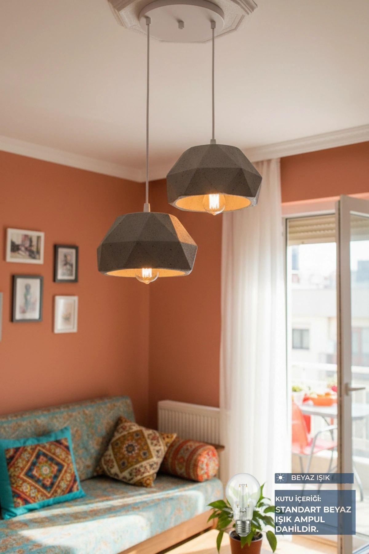 Siyah Beyaz 3'Lü Beton Görünümlü Avize