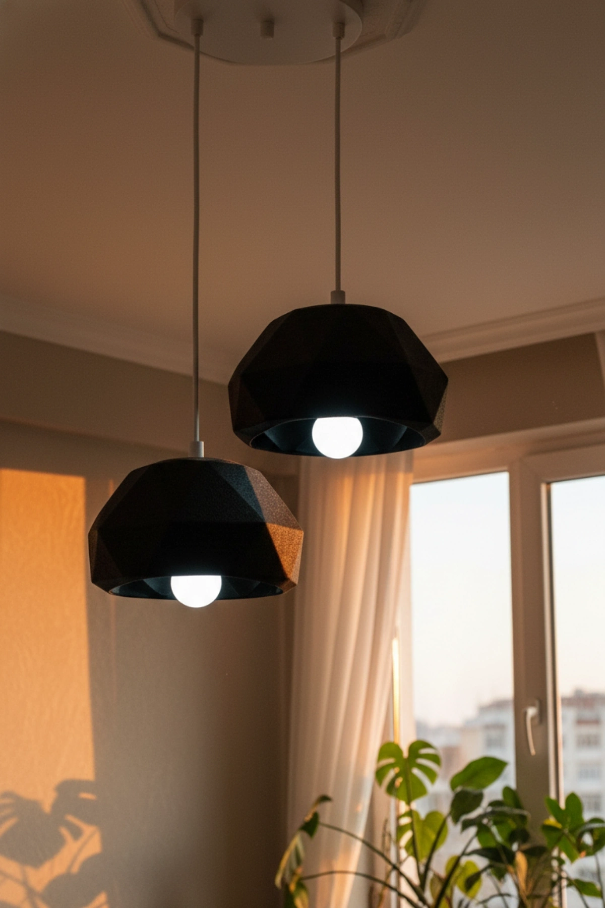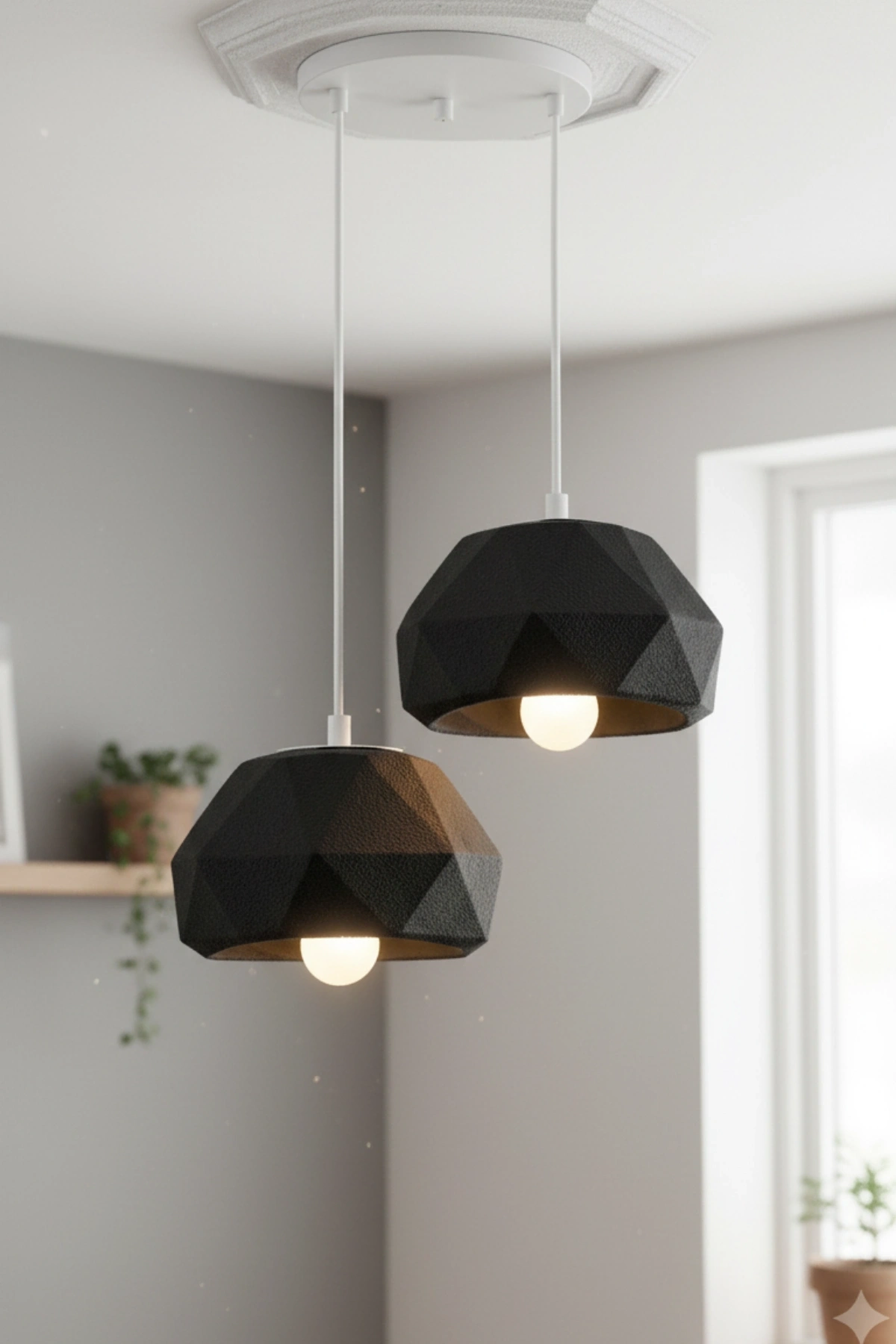 Siyah 2 Li Geometrik Avize 25 x 25
