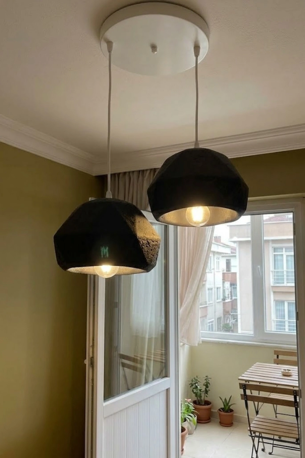 Siyah Beyaz 3'Lü Beton Görünümlü Avize