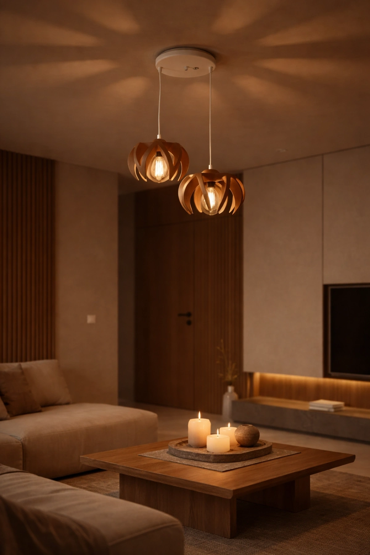 Kahverengi Beyaz 2Li Taç Formlu Avize 25 x 25