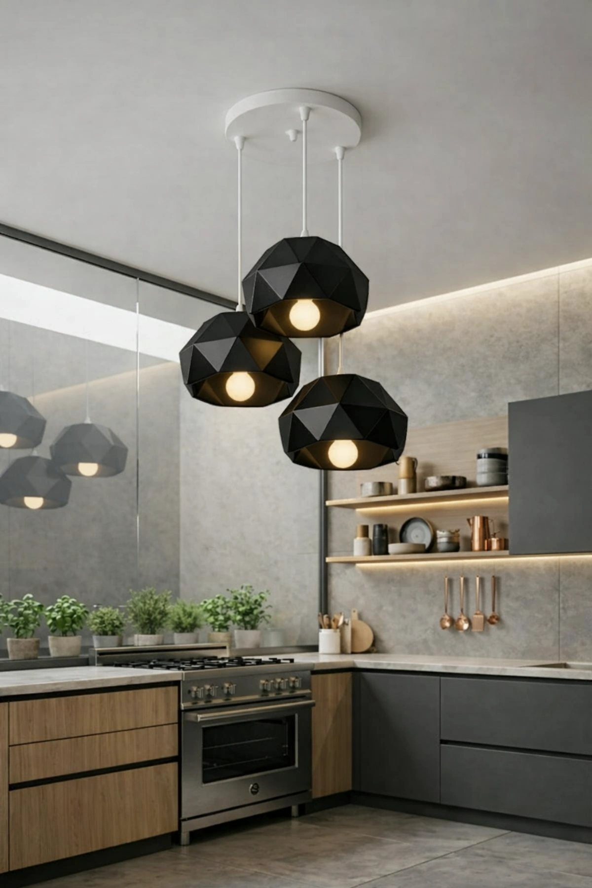 Siyah & Gri 3 Lü Geometrik Avize 25 x 25