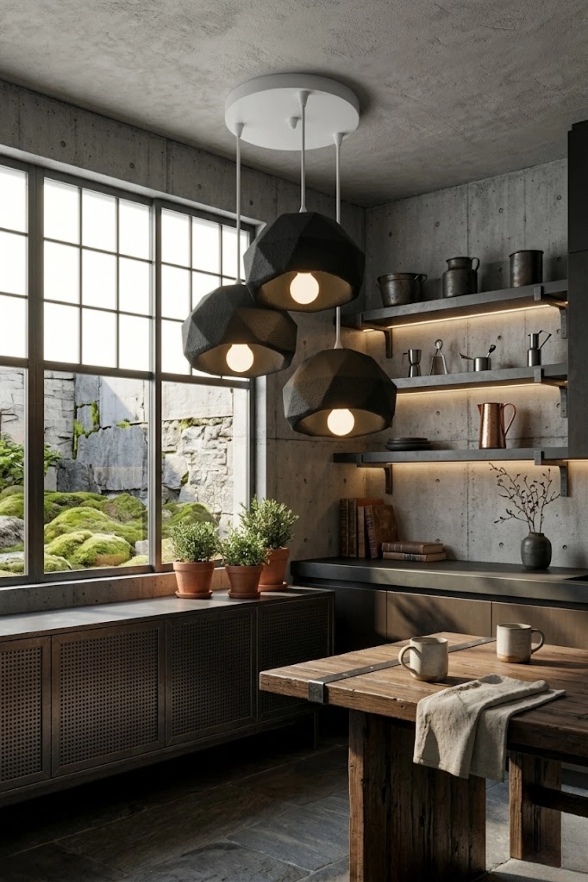 Siyah 3'Lü Beton Görünümlü Avize 25 x 25