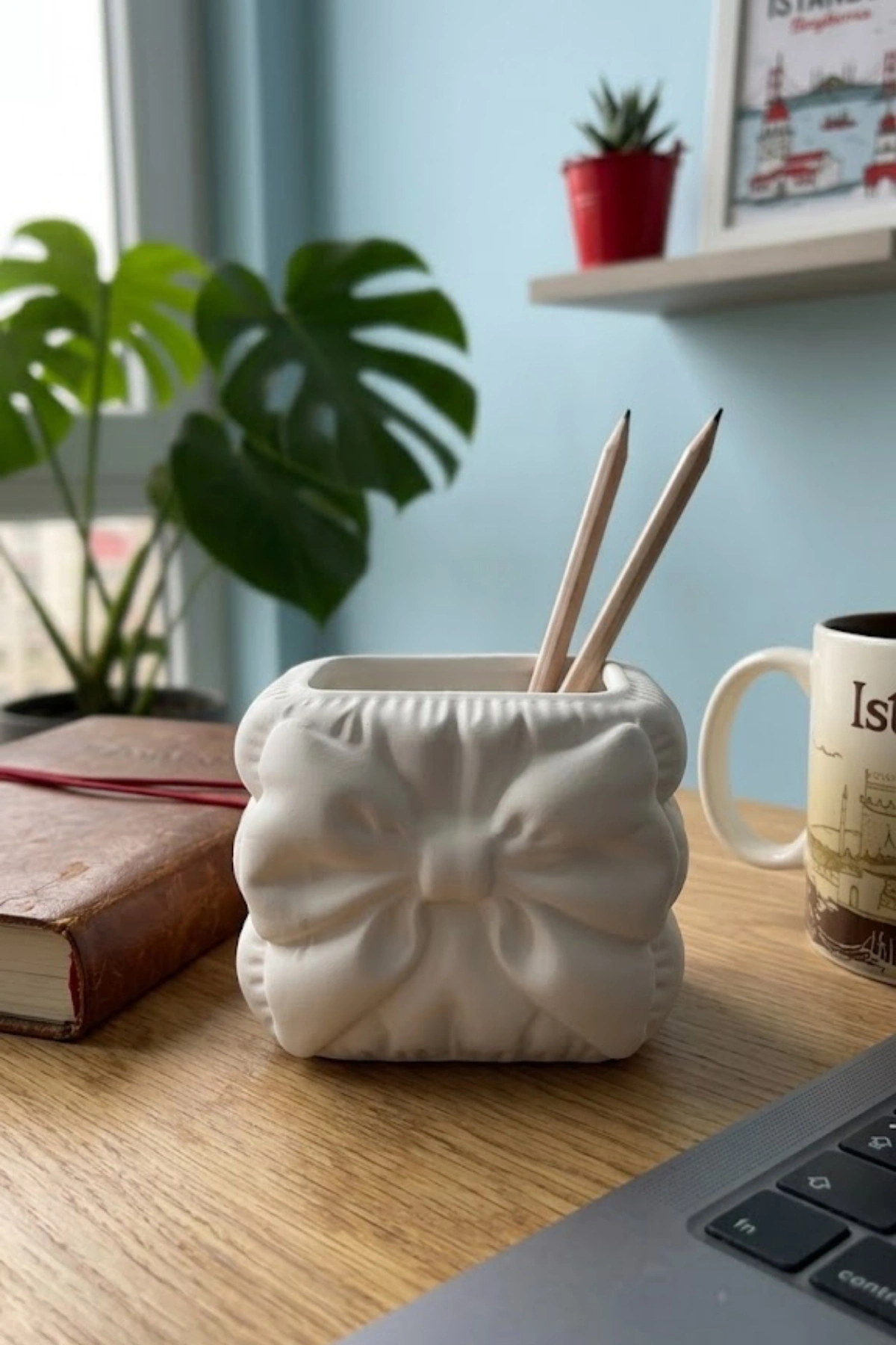 Beyaz Fiyonk Detaylı Kalemlik 14 x 12