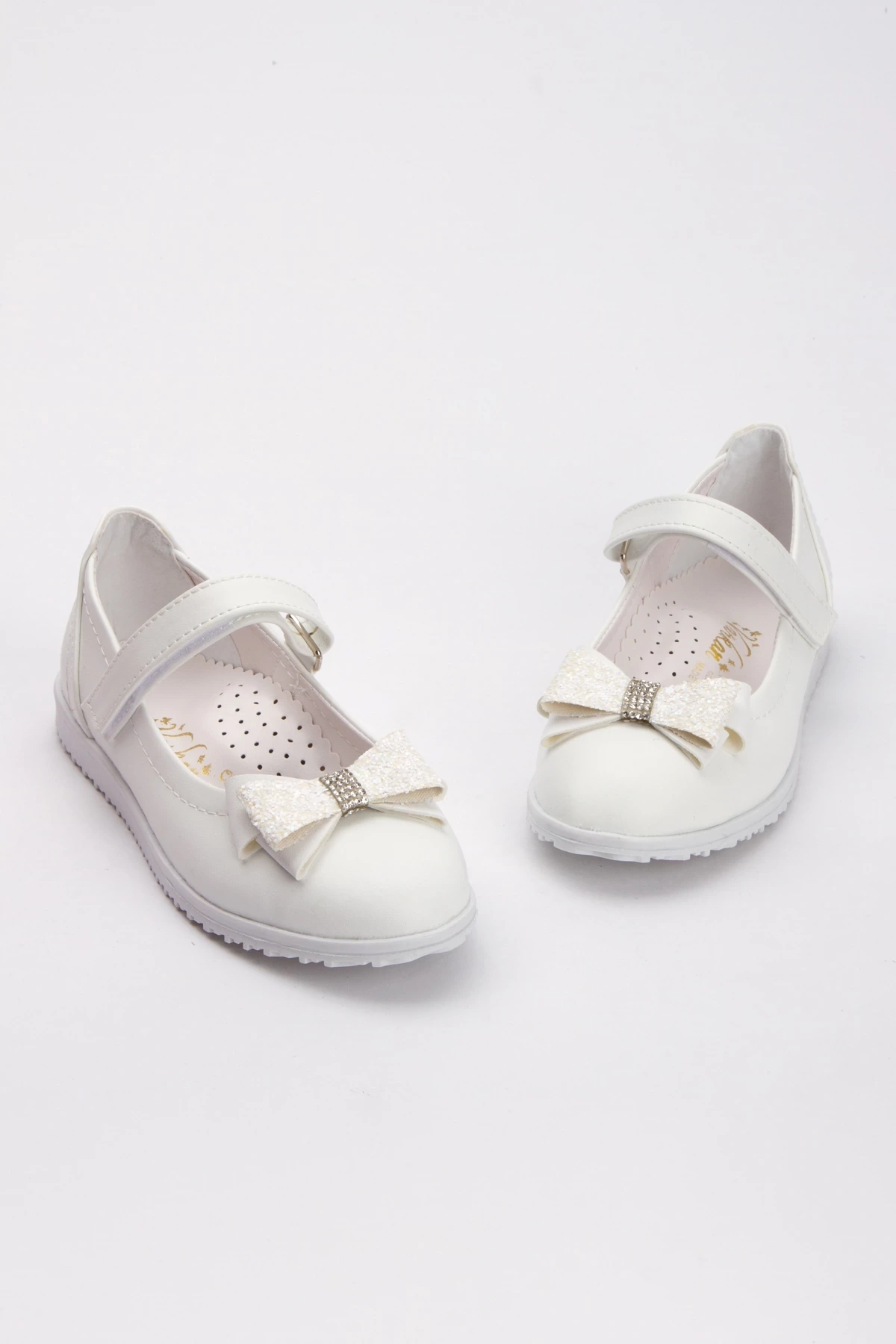 Kaymaz Taban Beyaz Kız Çocuk Fiyonklu Babet