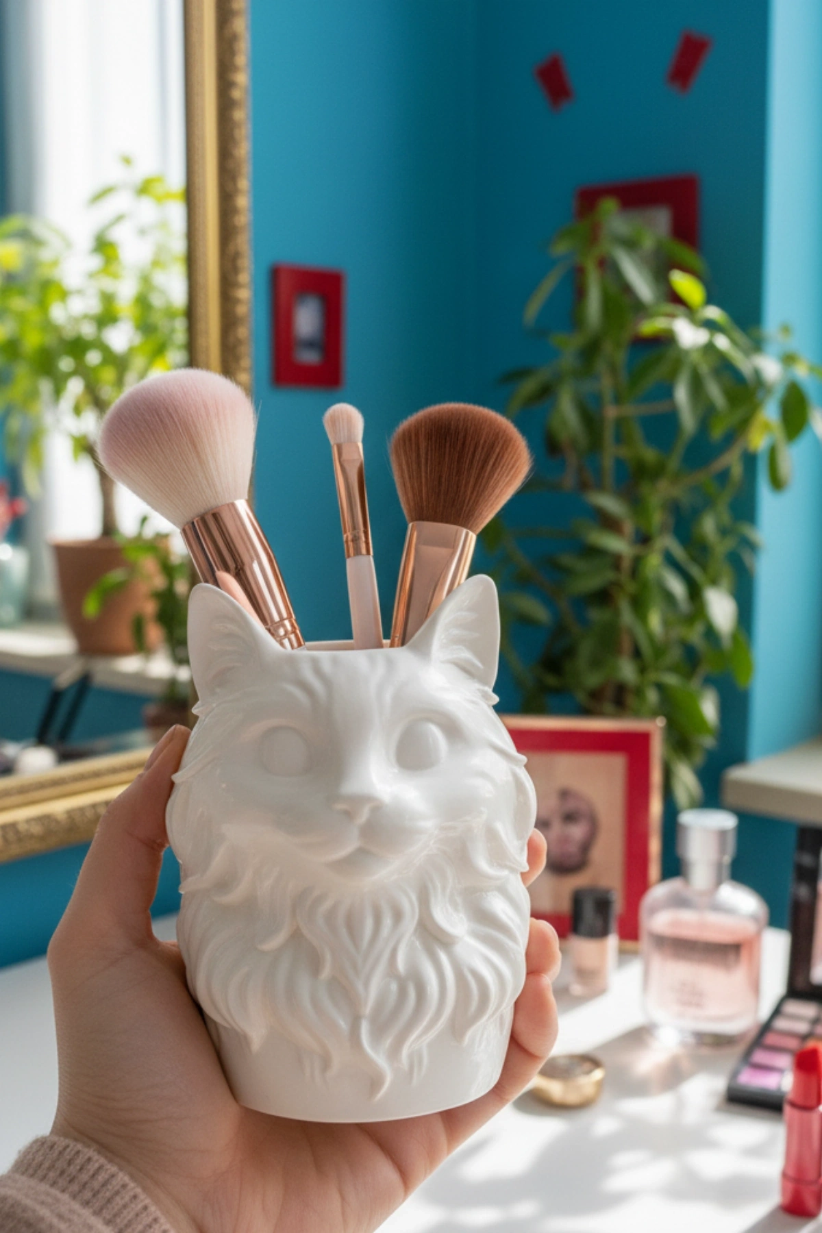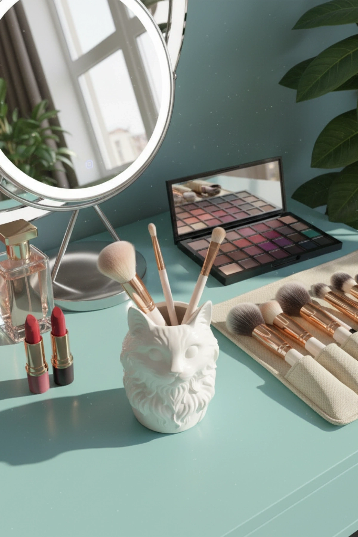 Beyaz Kedi Tasarımlı Kalemlik Organizer