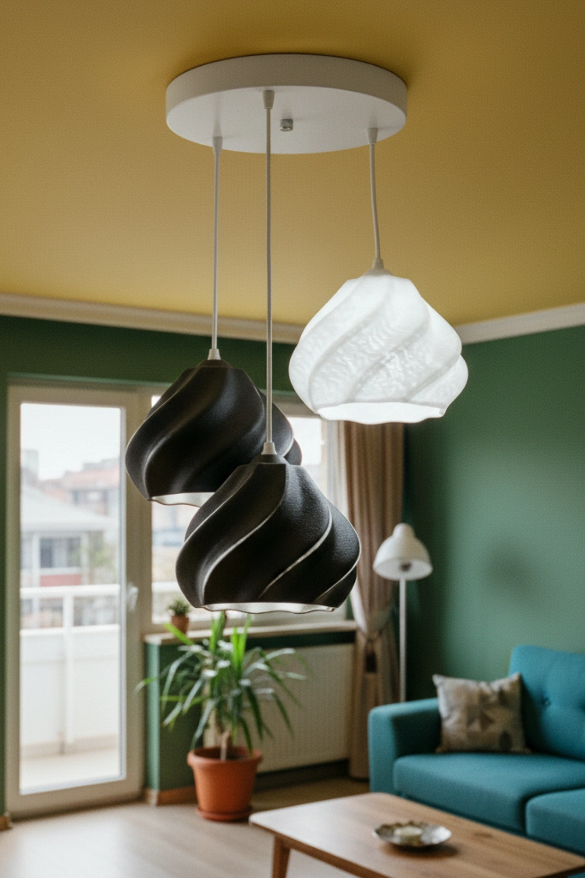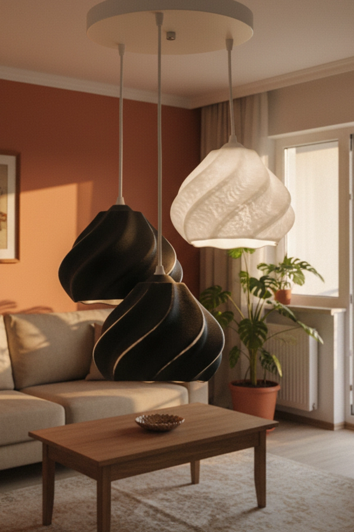 Siyah Beyaz Minimal Dalga Tasarım 3’lü Sarkıt Avize 25 x 20