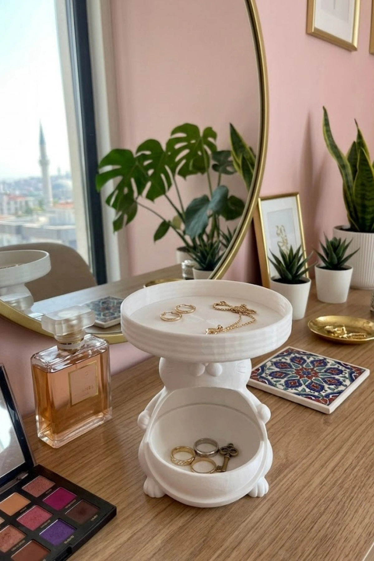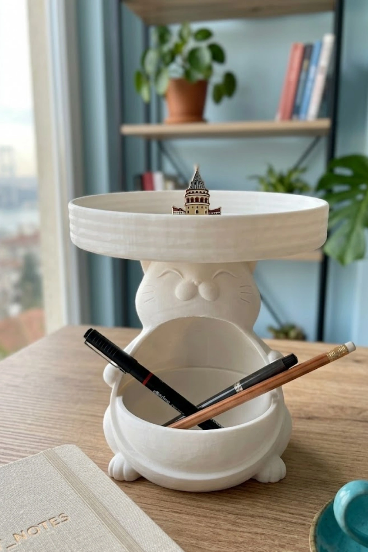 Beyaz Dost kedi Figürlü Tepsili Organizer