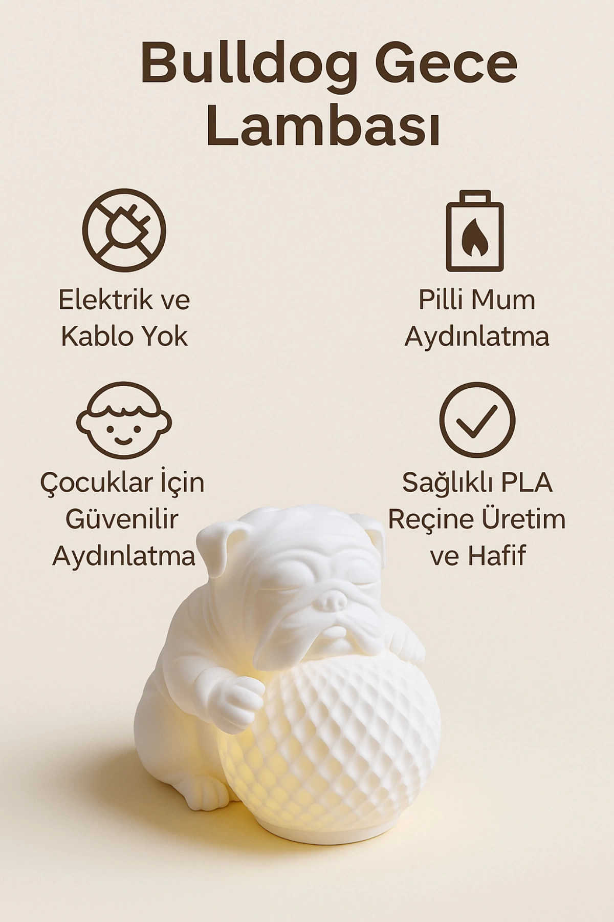 Bulldog Dekoratif Gece Lambası Pilli Kablosuz- Led Mum Hediye