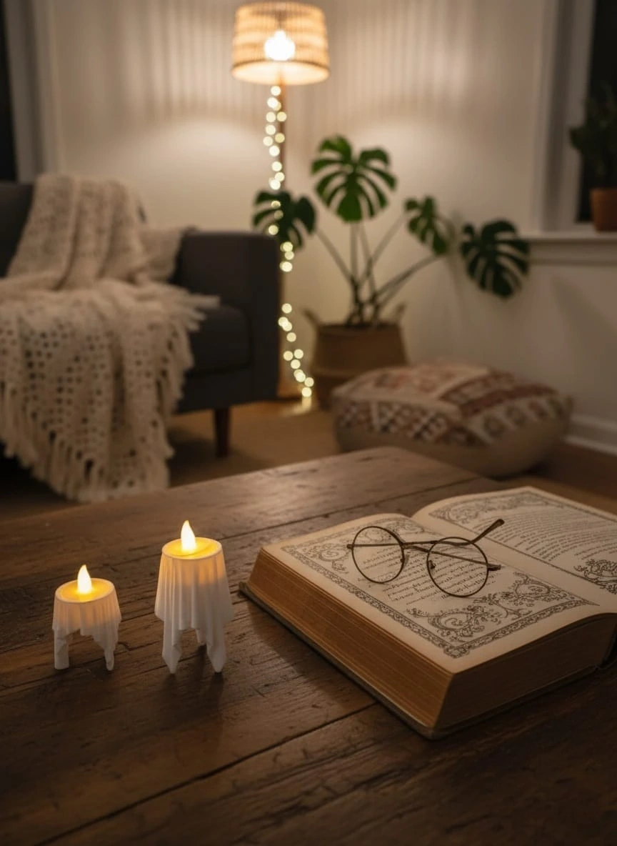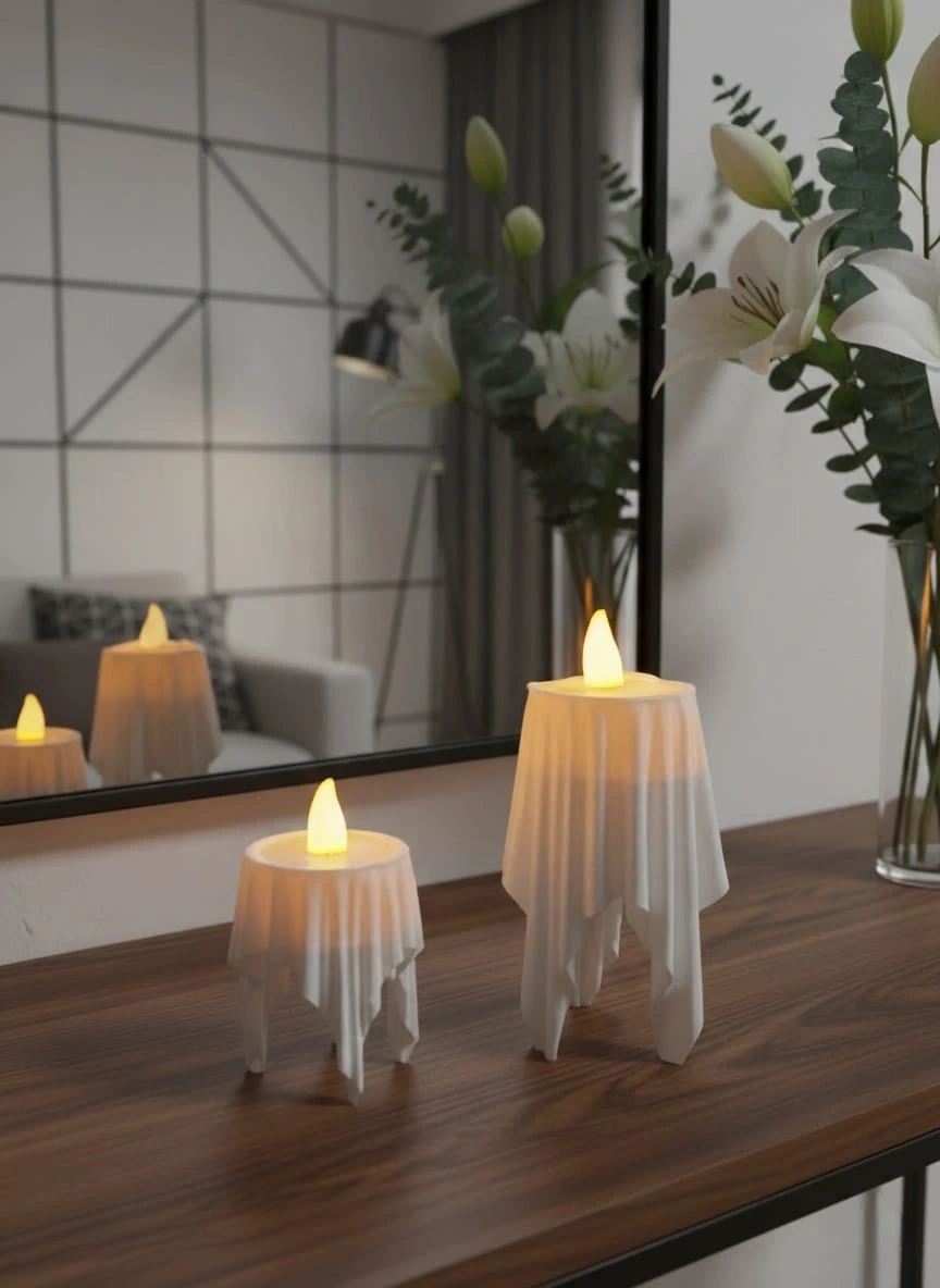 Dekoratif Bohem Beyaz Uçan Mumlar (Tealight Mum Hediye) 8 x 4,5 cm