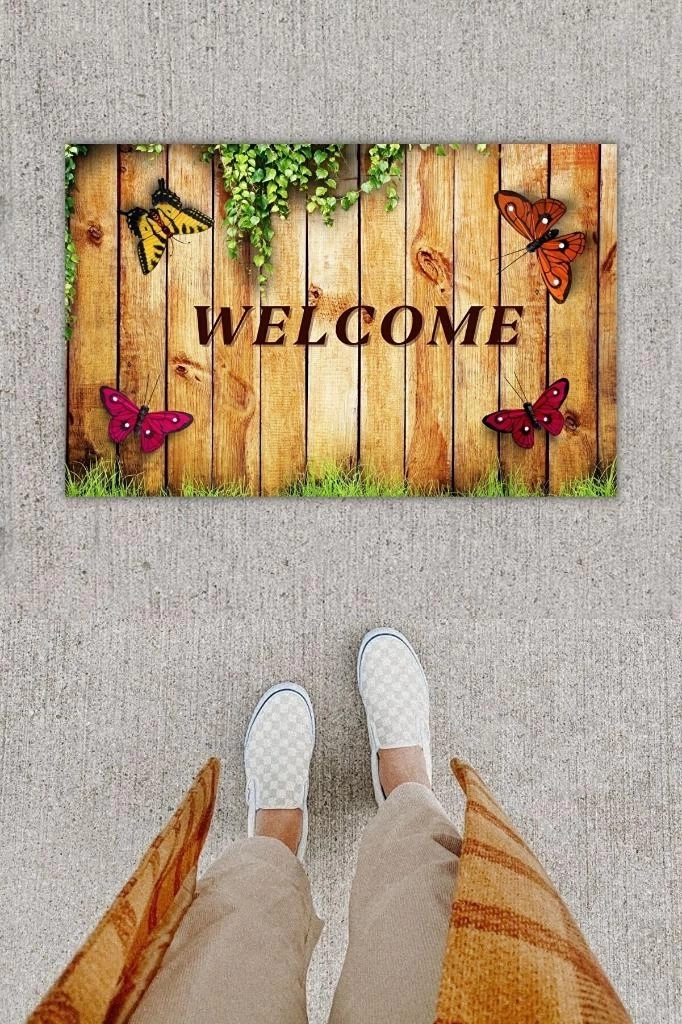 Dijital Baskı Dekoratif 'lü Kelebek Kahverengi Kapı Önü Paspası K-1257