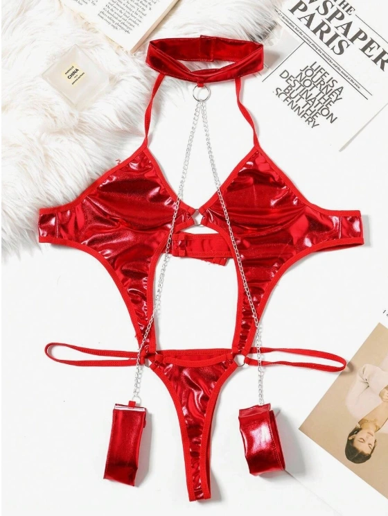 Dropcek Fantezi Seksi Zincirli Kelepçeli Lame Gecelik TG275440-K