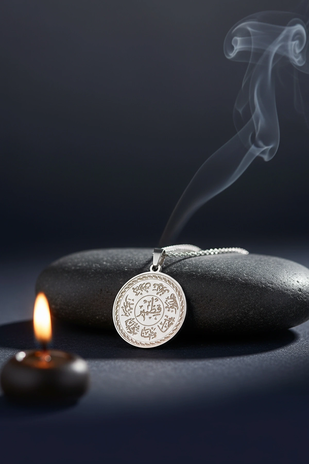 Kolyenin merkezinde yer alan dua kısmı, kullanıcısına huzur ve koruma sağlamayı amaçlar.