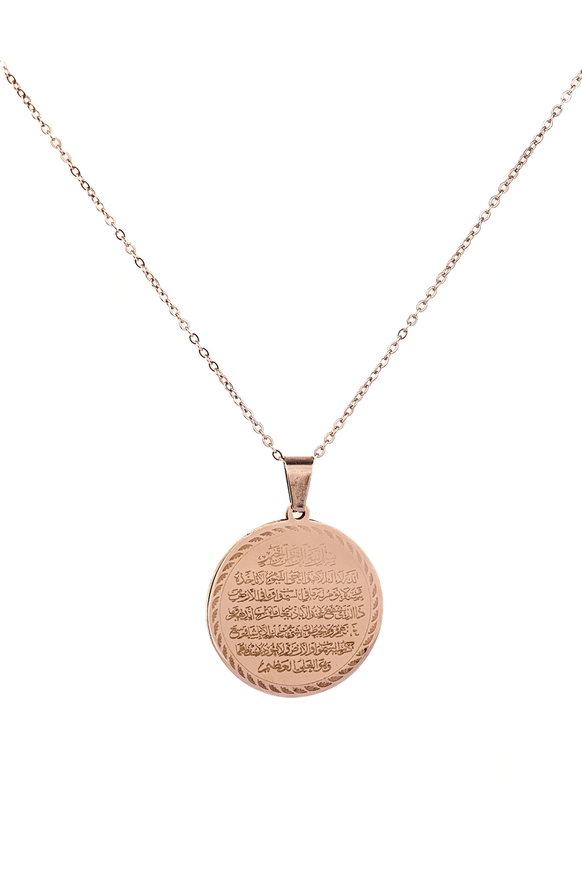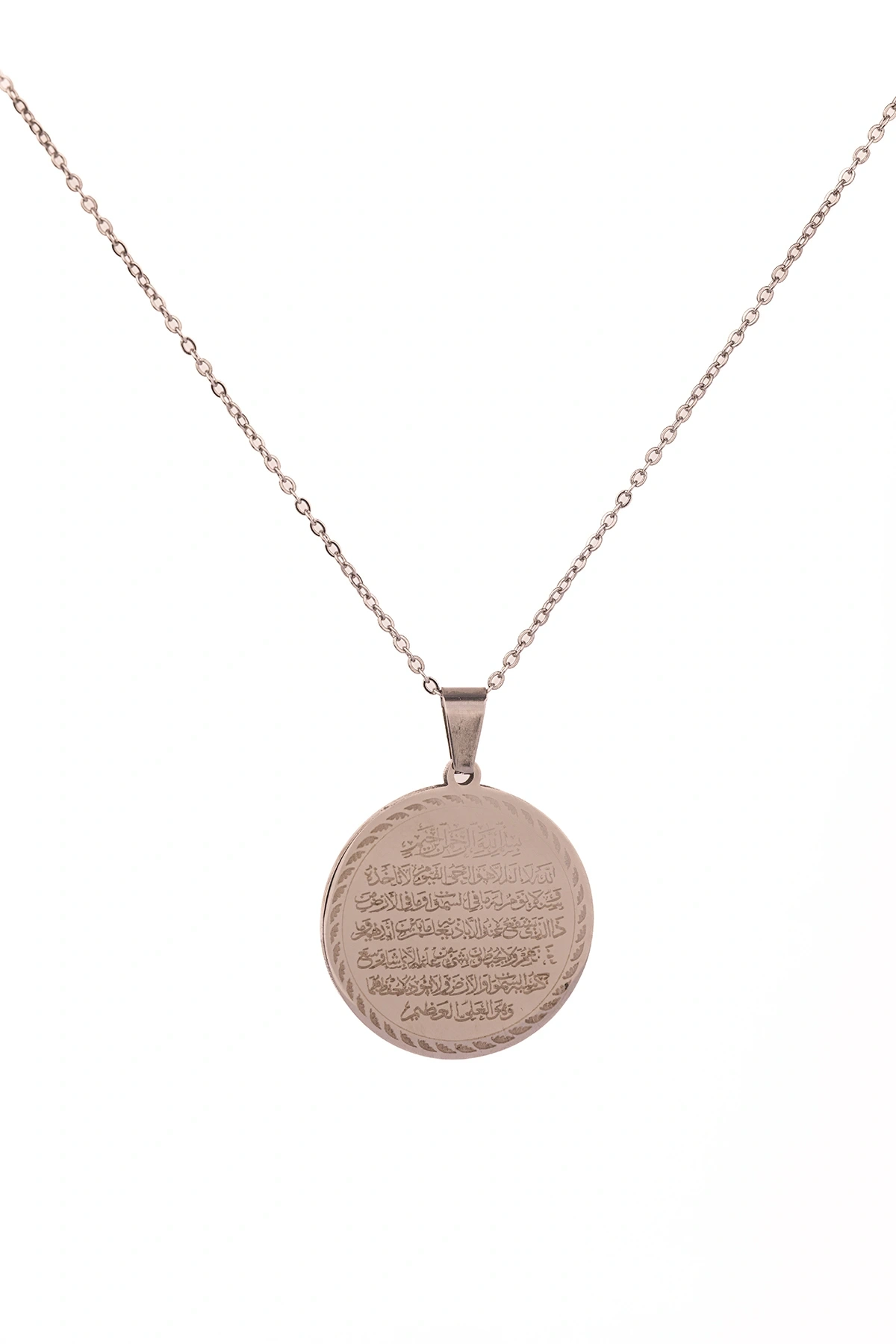 Gümüş Renk Ayetel Kürsi ve Nazar Duası Yazılı Çelik Kolye Paslanmaz Kararmaz Zincir