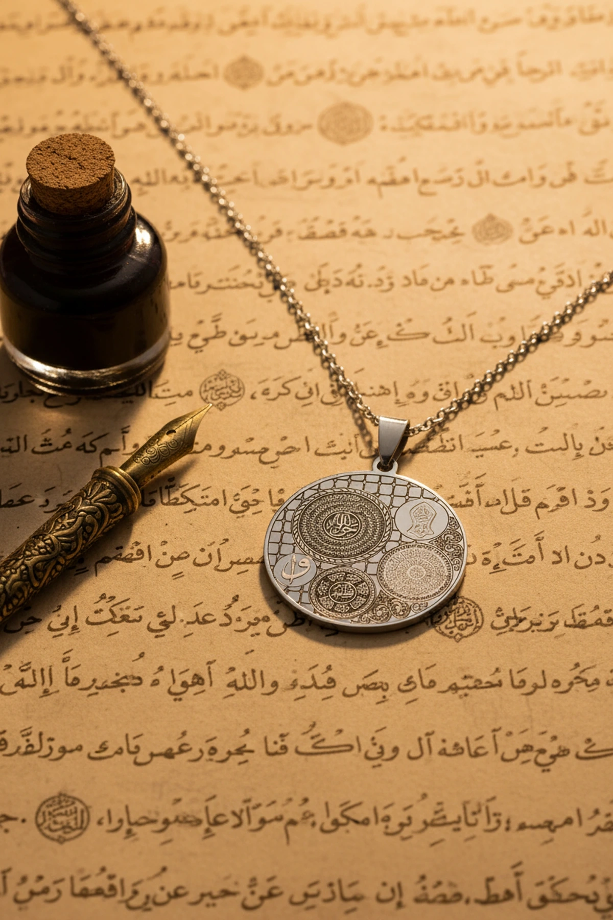 Kolyemizin üzerinde manevi değeri yüksek birçok ayet, dua ve sembol yer alır: