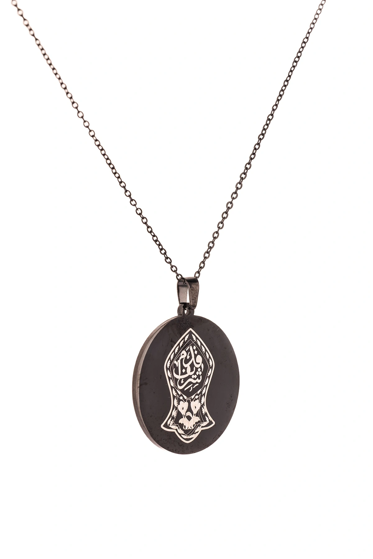 Hakkani Mührü ve Nalı Şerif Yazılı Titanyum Kaplama Çelik Kolye