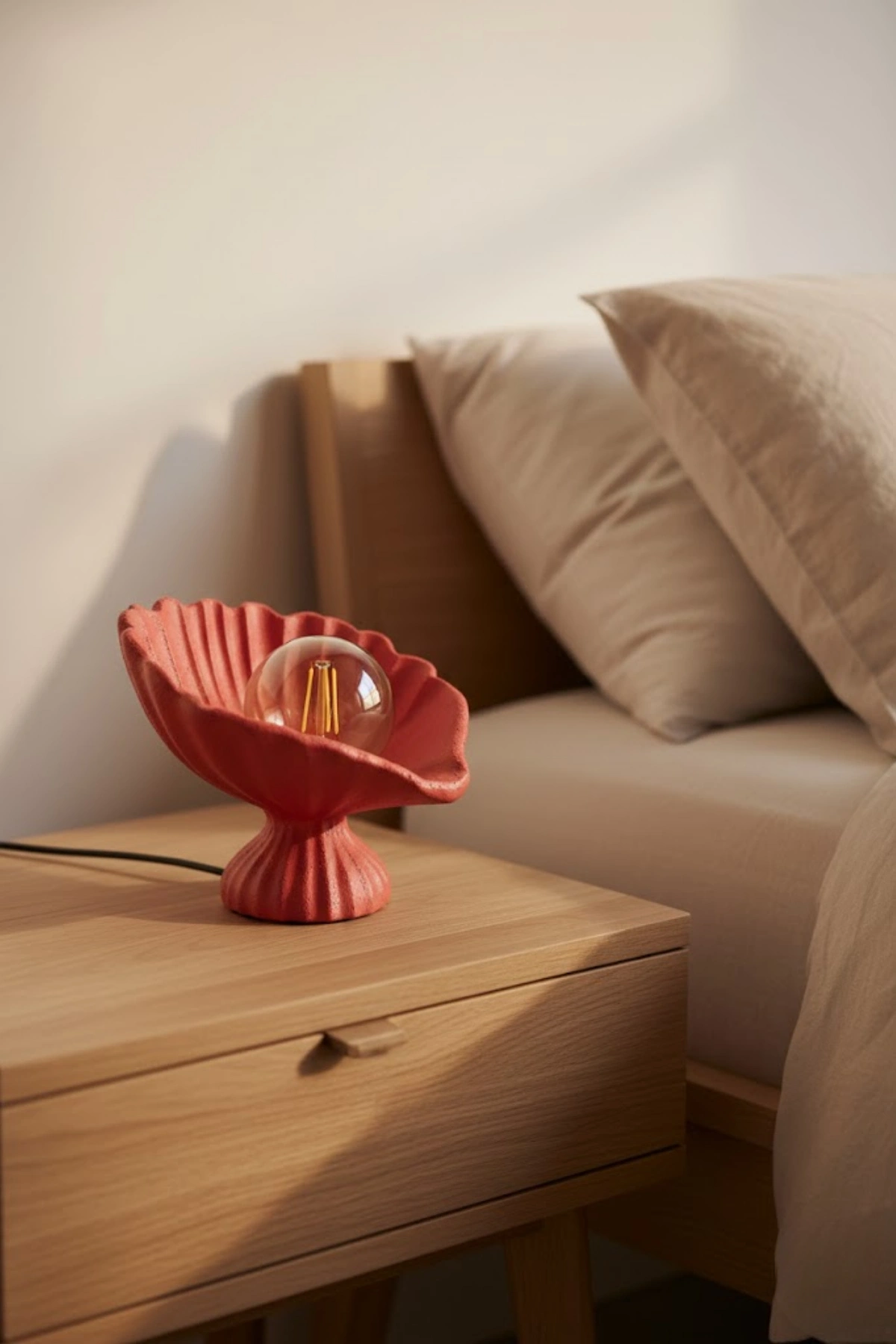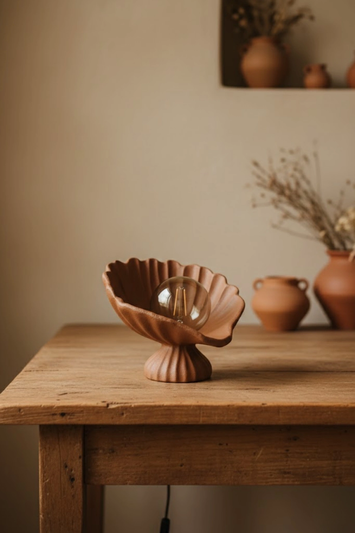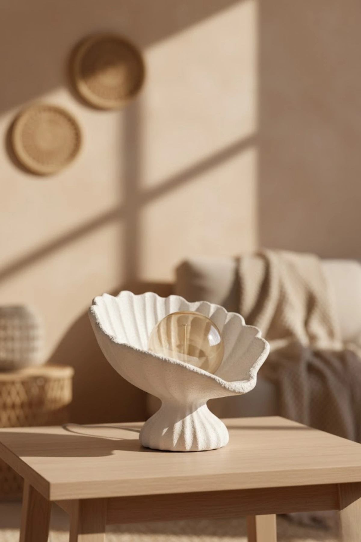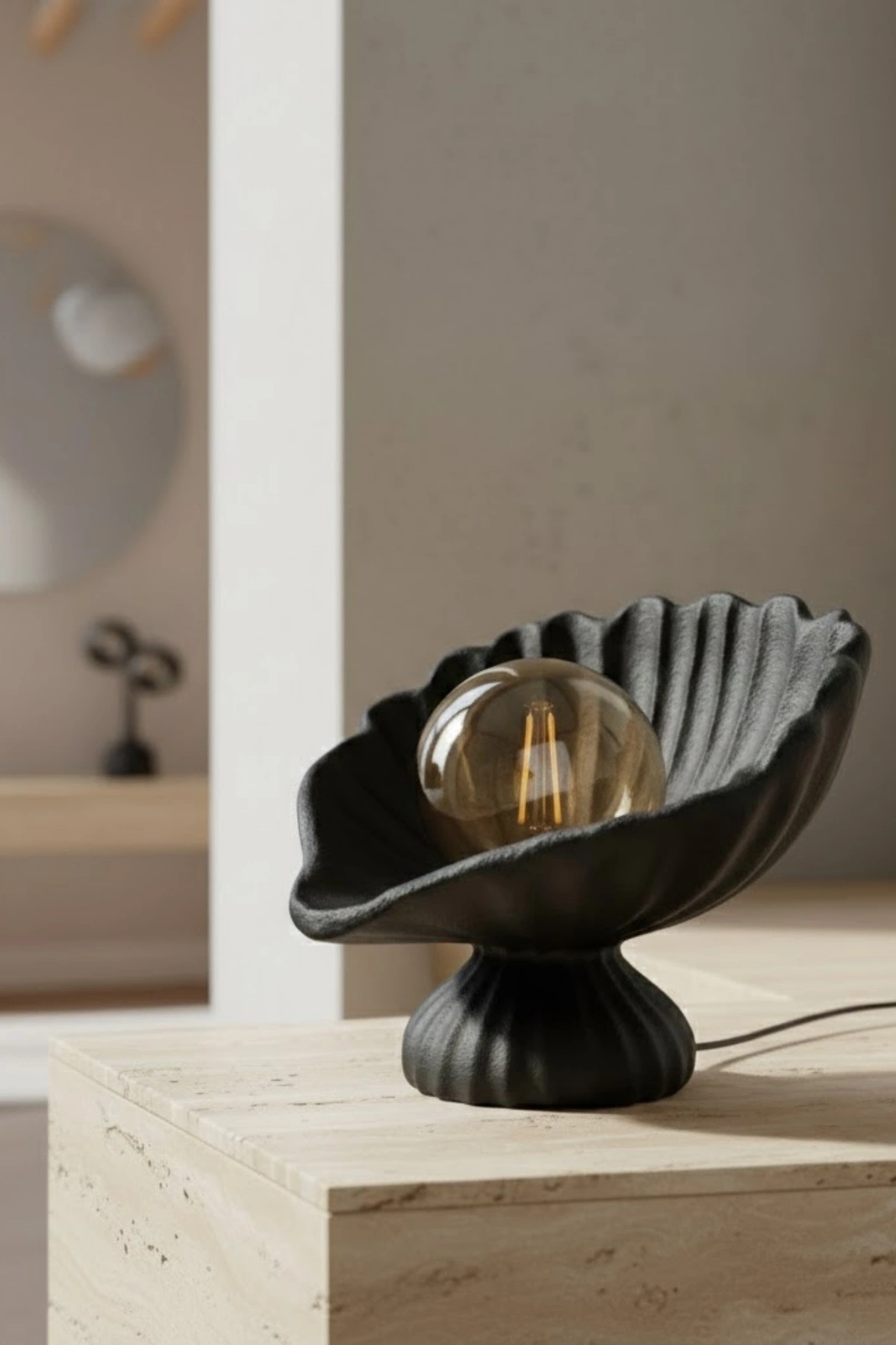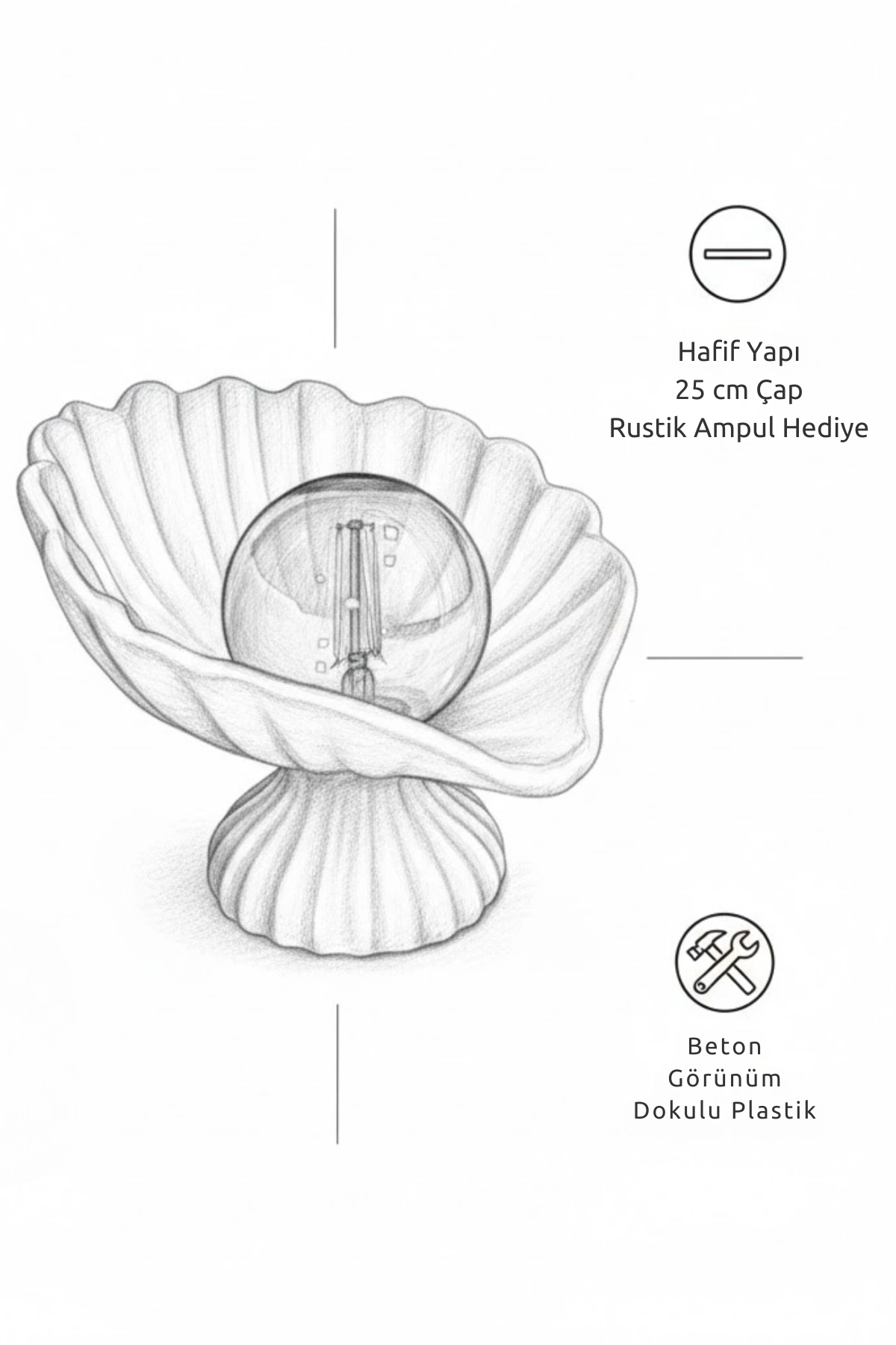 İstiridye Abajur Beton Görünümlü 3D 25 x 20 cm