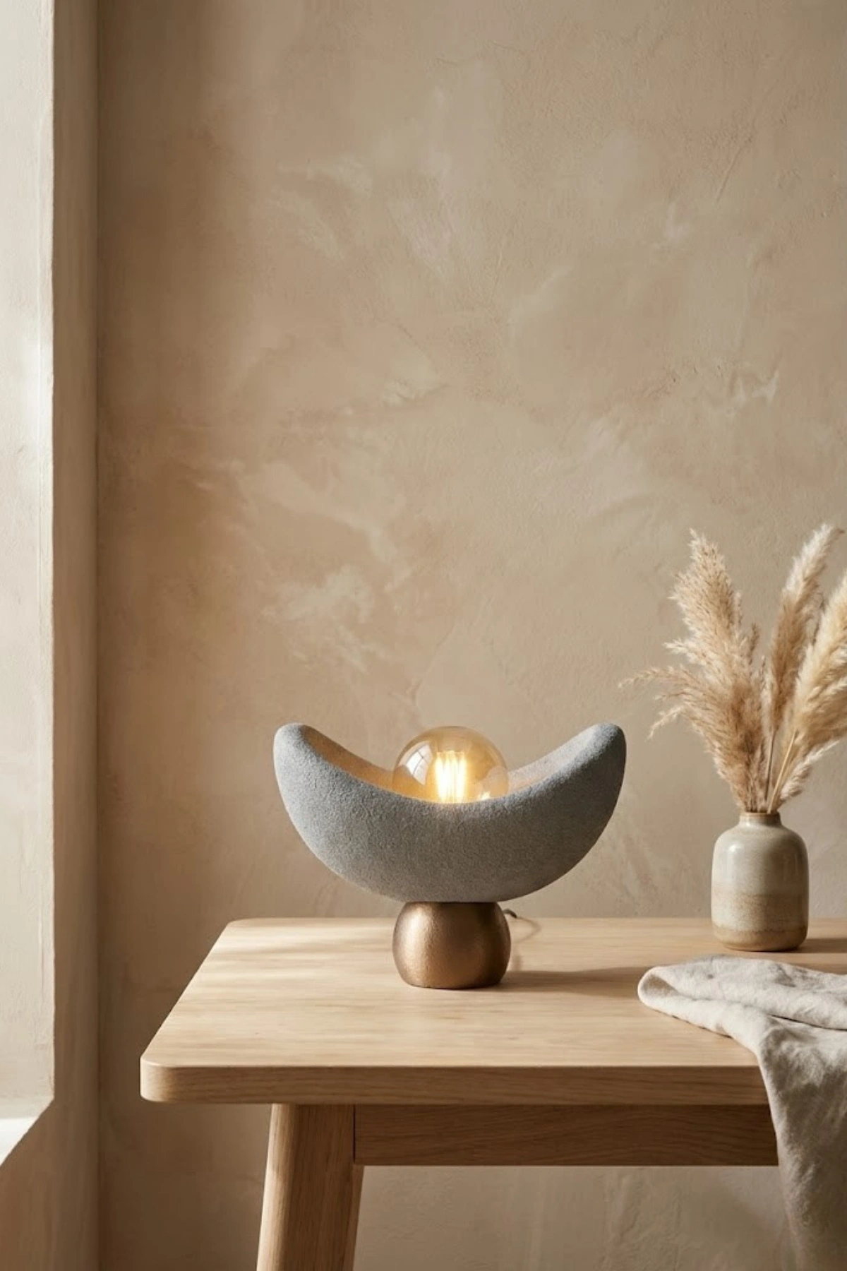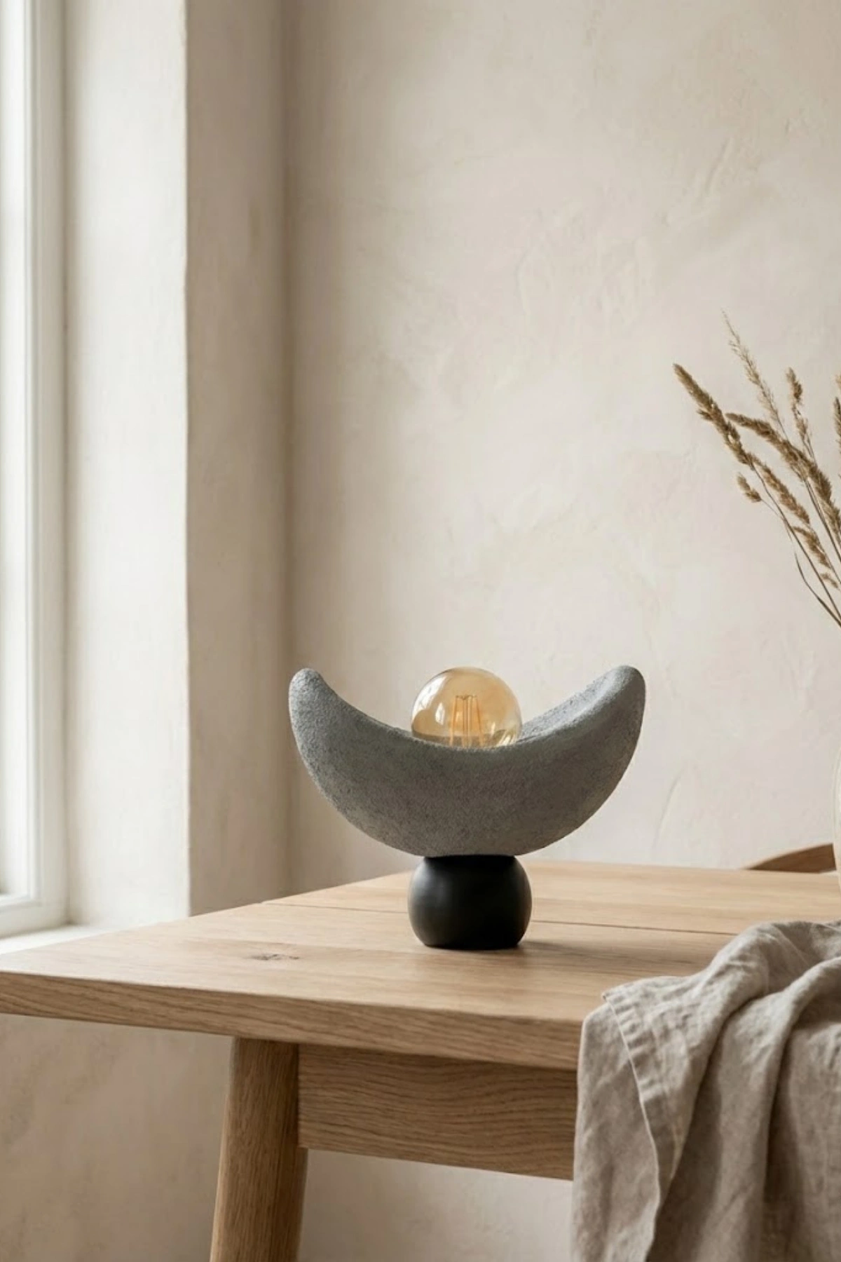 Modern Beton Dokulu Abajur Oval Gece Lambası 3D 25 Cm