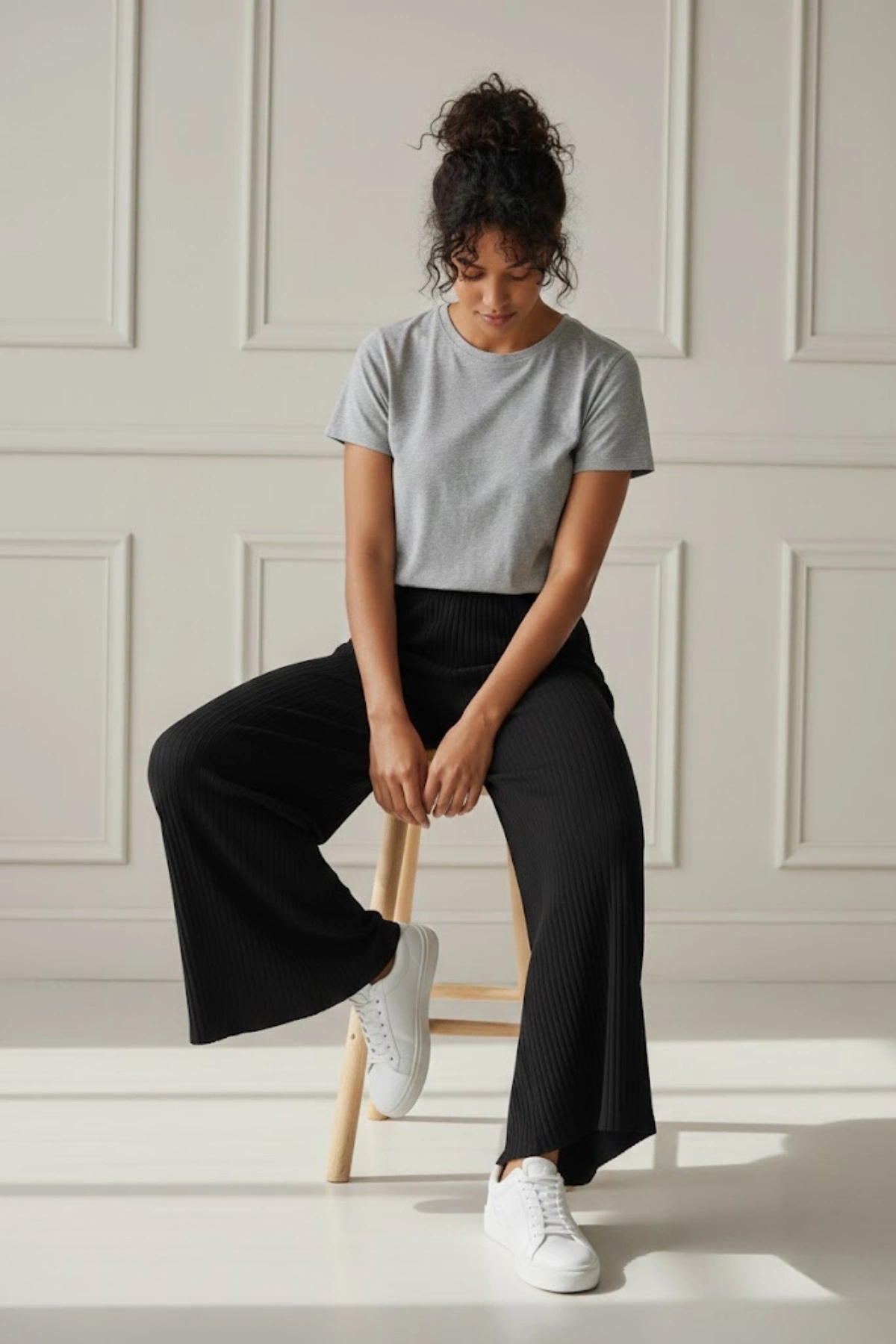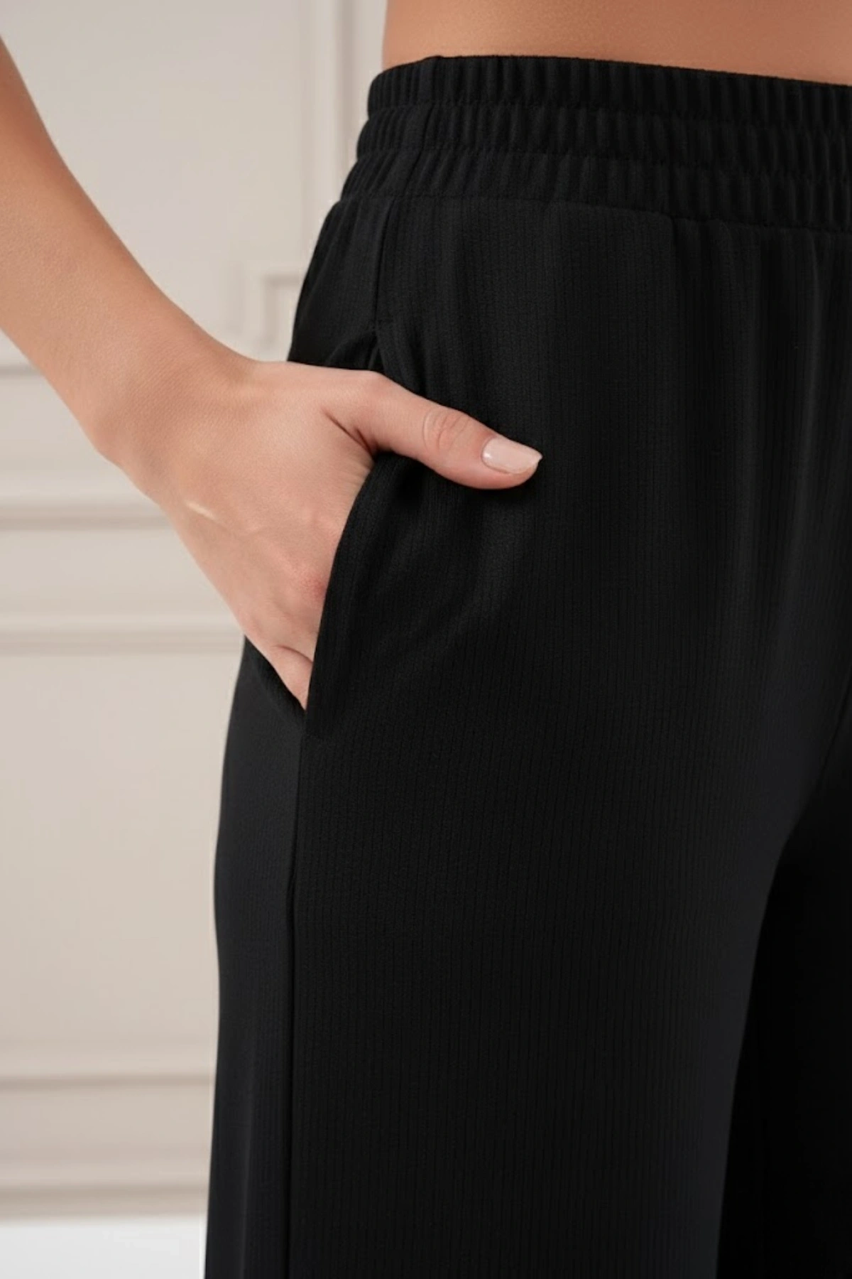 Kadın Düz Siyah İnce Saten Yazlık Bol Paça Eşofman Altı – Rahat & Şık