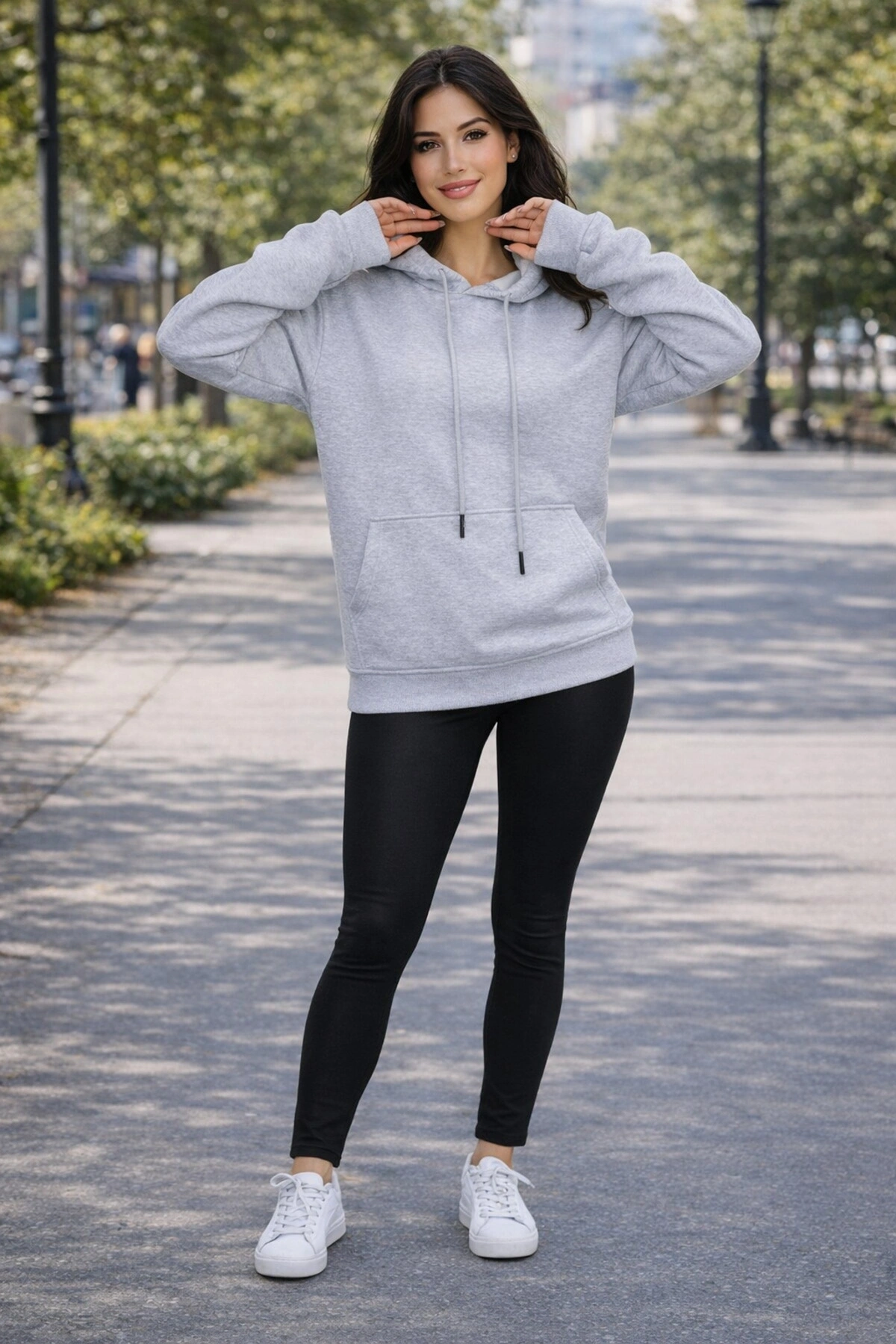 Kadın Oversize Premium 3 İplik Şardonlu Sweatshirt-Kapşonlu