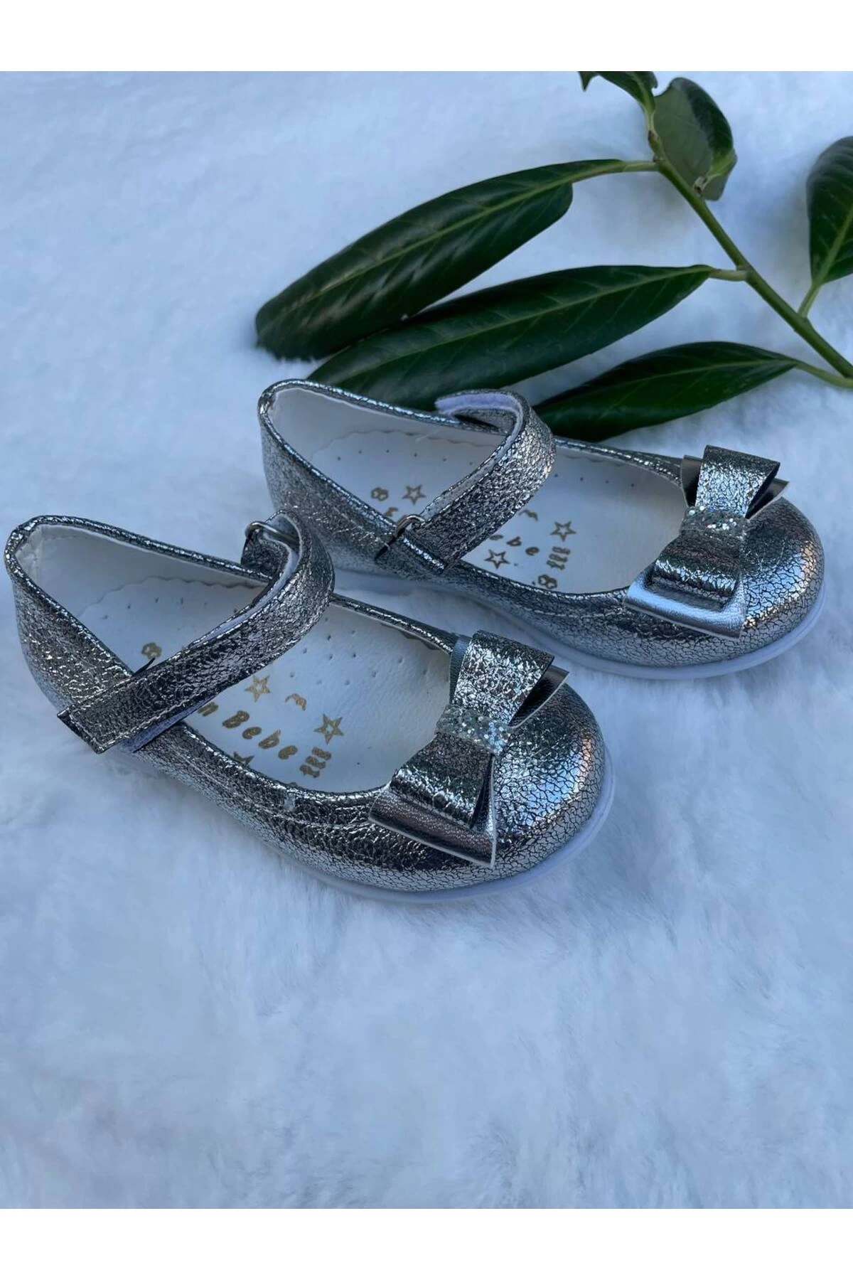Kız Bebek Metalik Işıltılı Gümüş Prenses Babet Ayakkabı