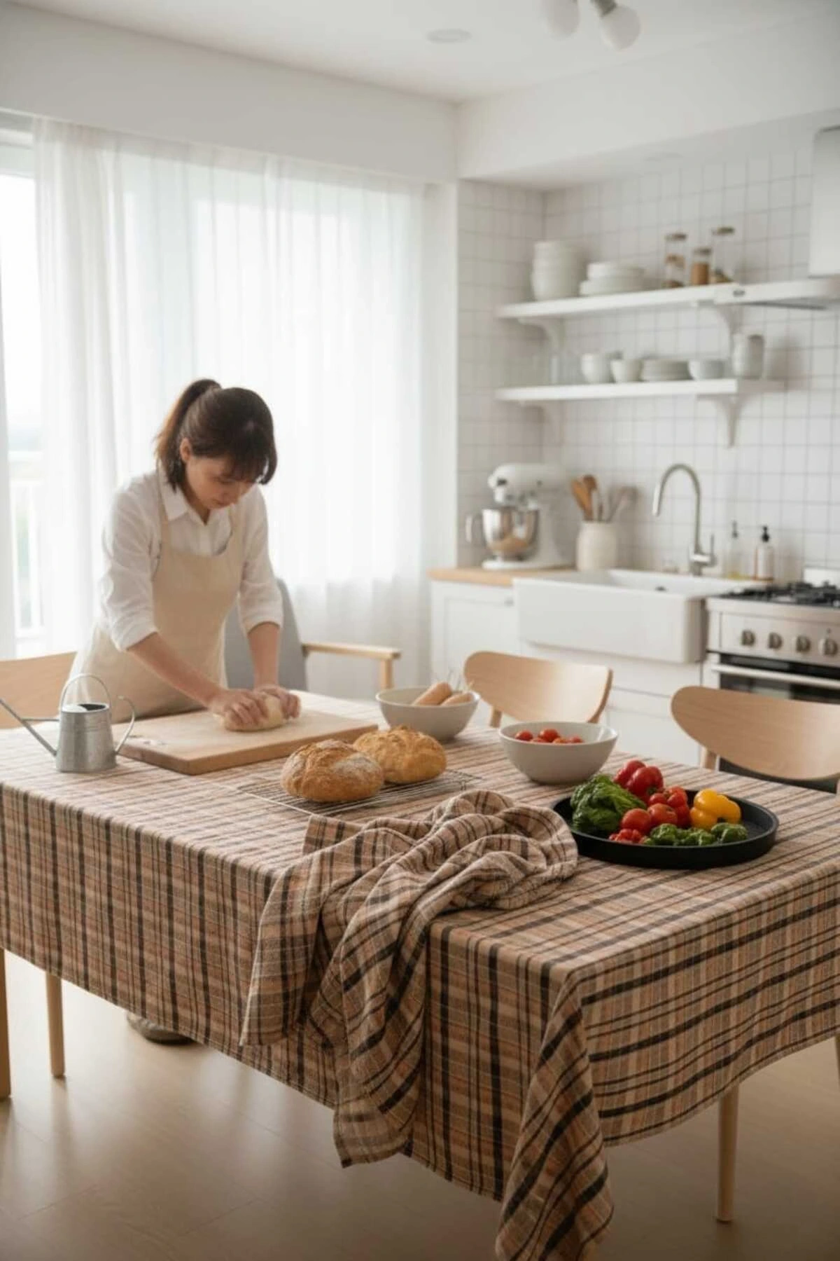 Modern Ekose Masa Örtüsü Yıkanabilir Pamuklu Günlük, Çeyizlik Sofra Örtüsü 140 x 200 cm