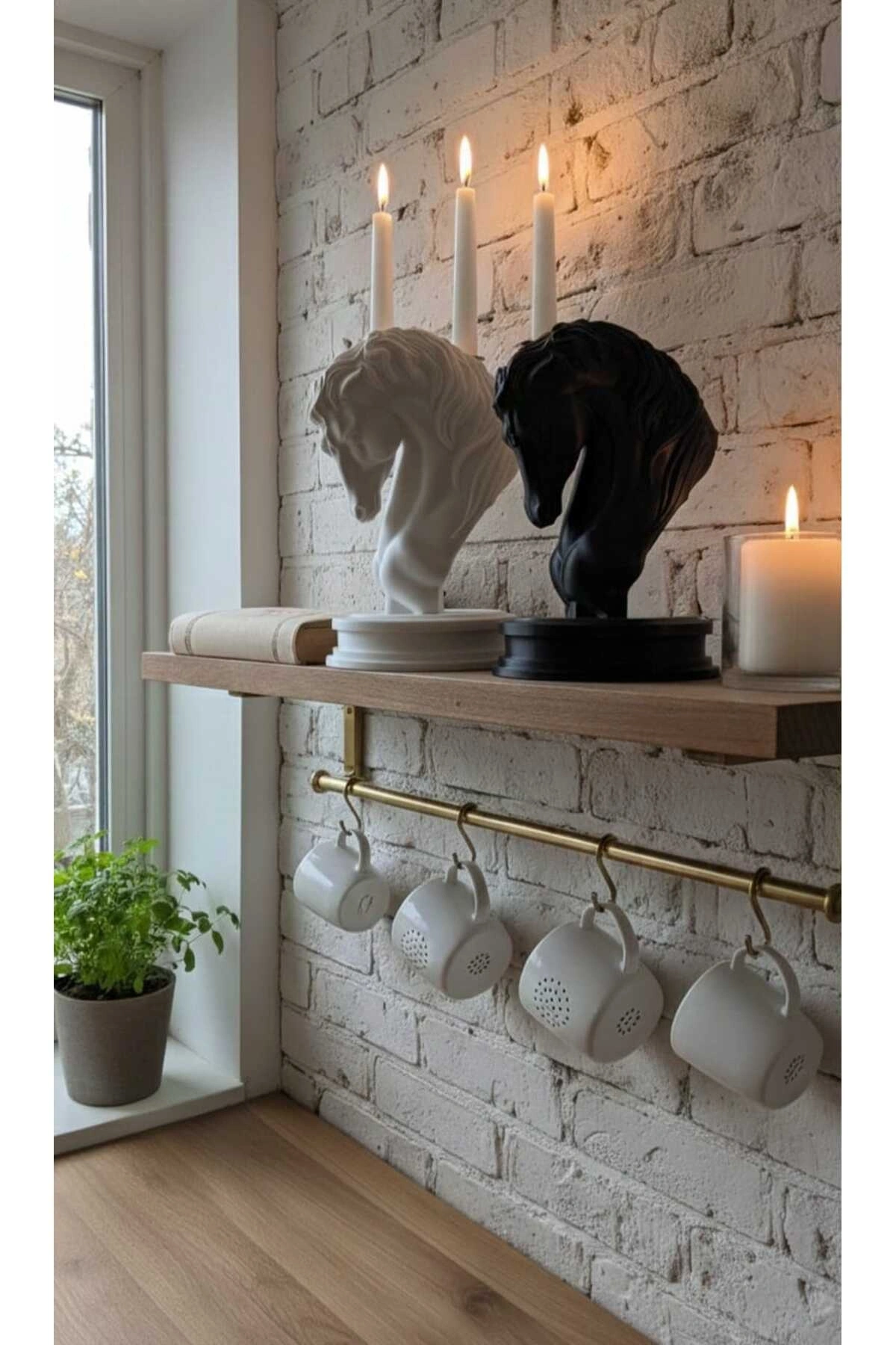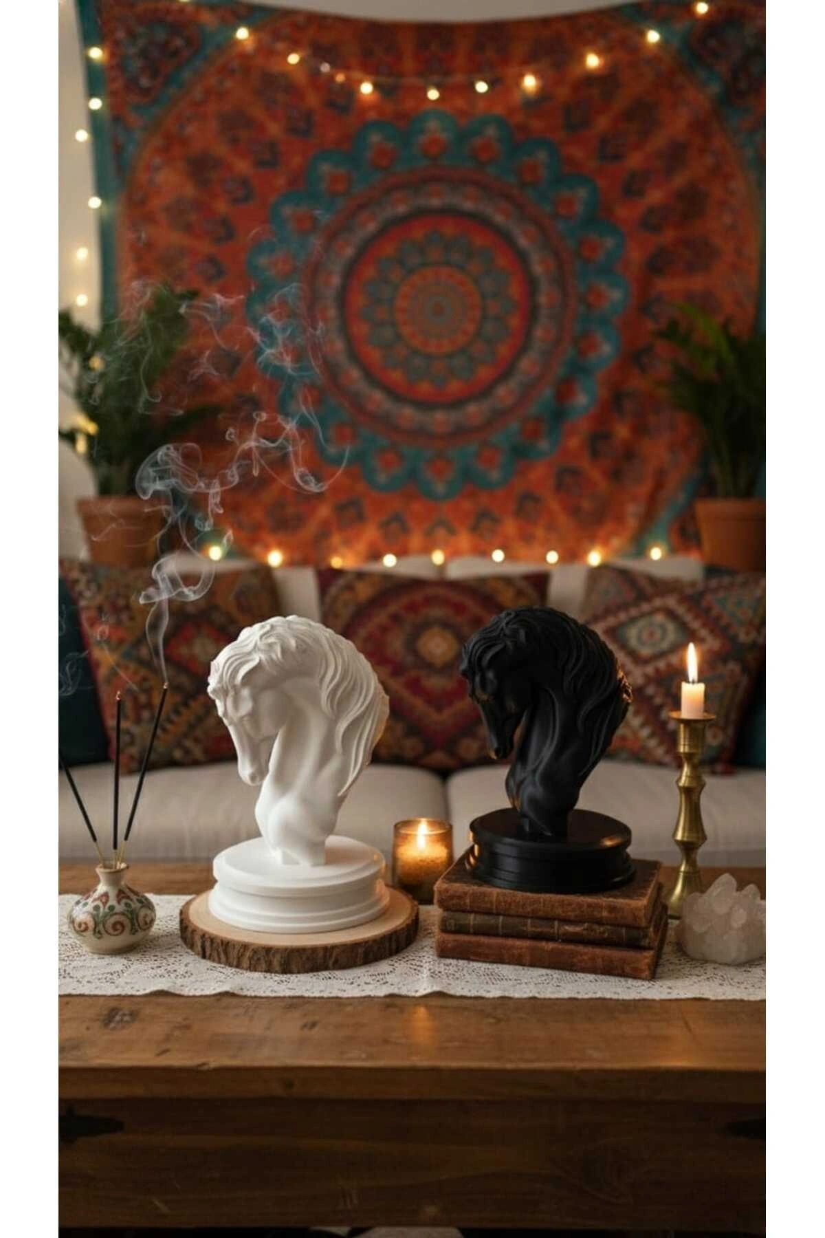 Modern Tasarım Siyah & Beyaz İkili At Heykeli Seti 12 x 20 cm