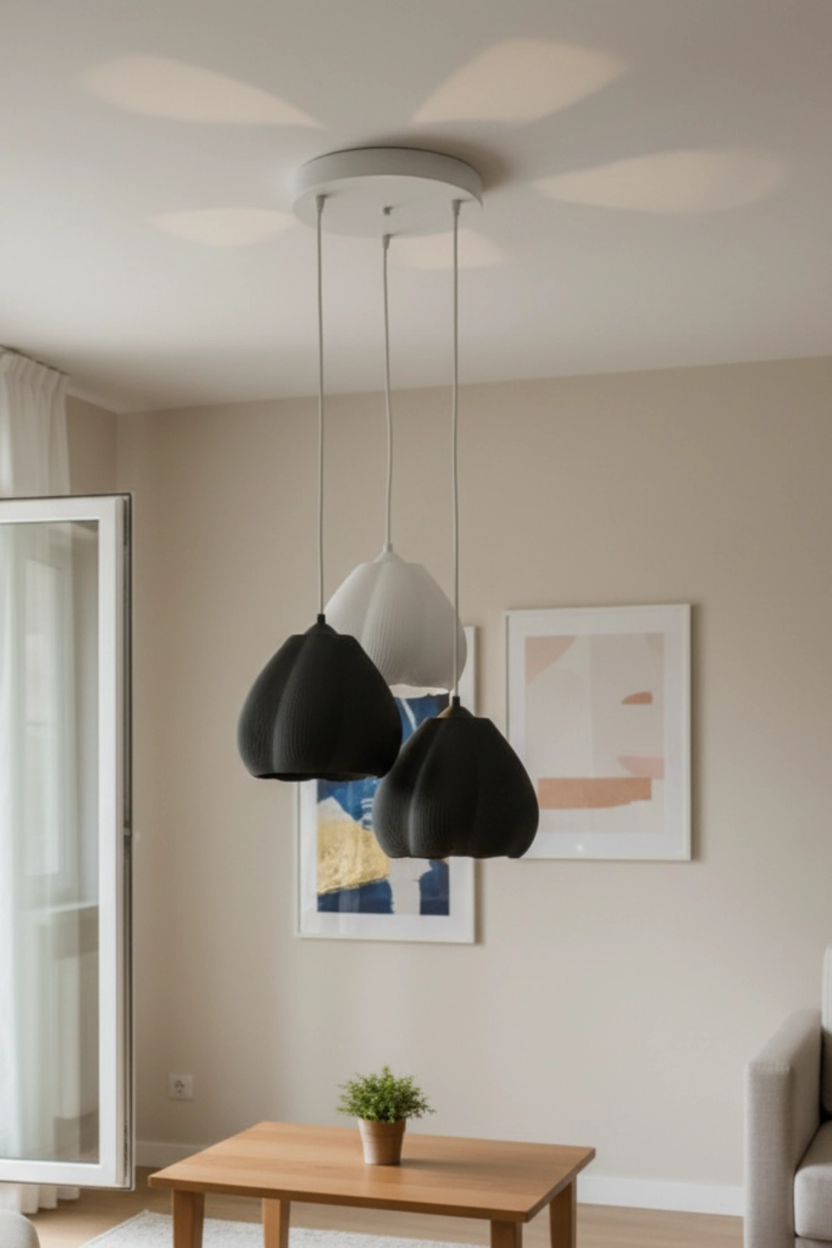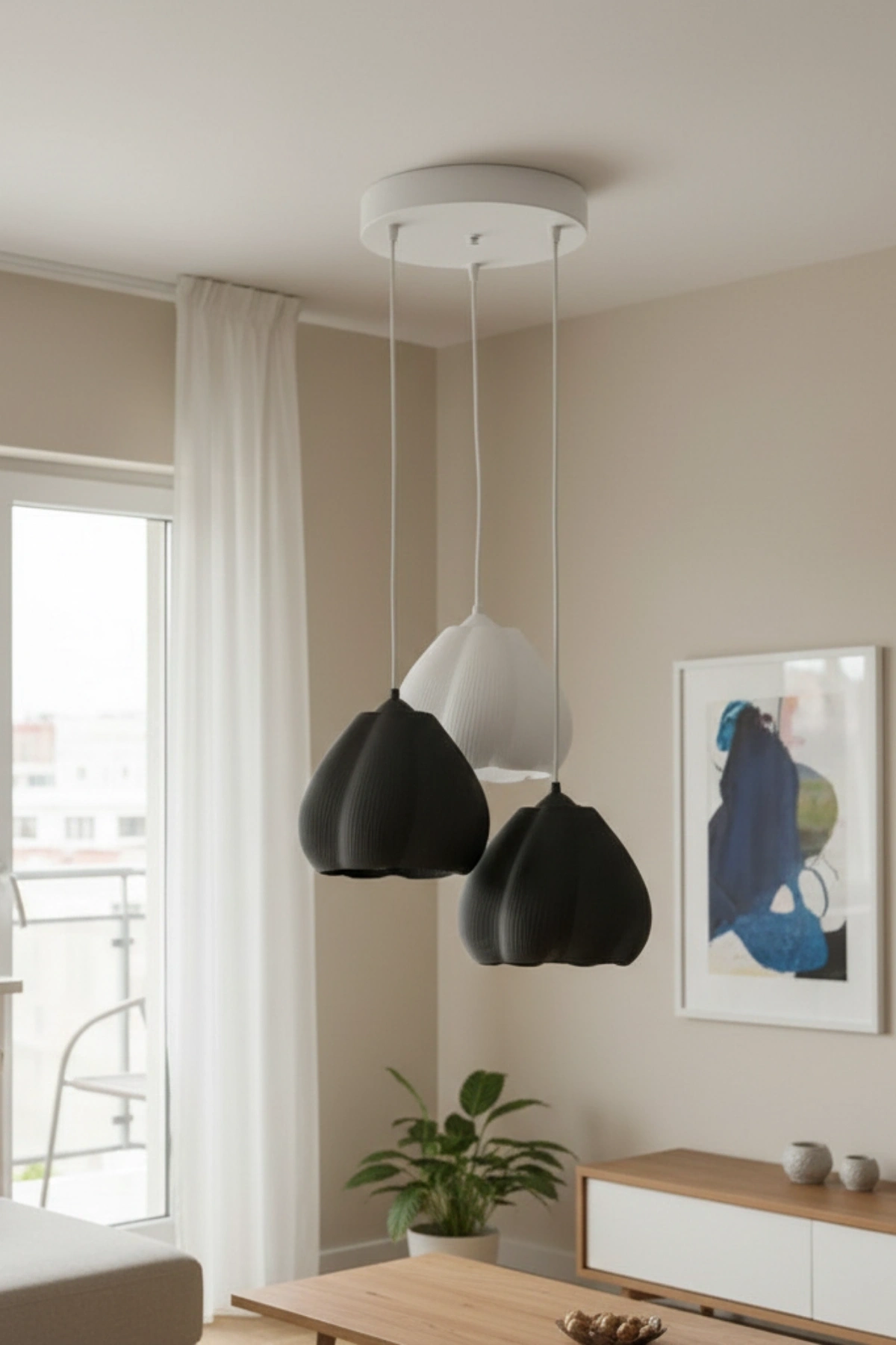 Siyah Beyaz Akış Formlu 3’lü Sarkıt Avize 25 x 20