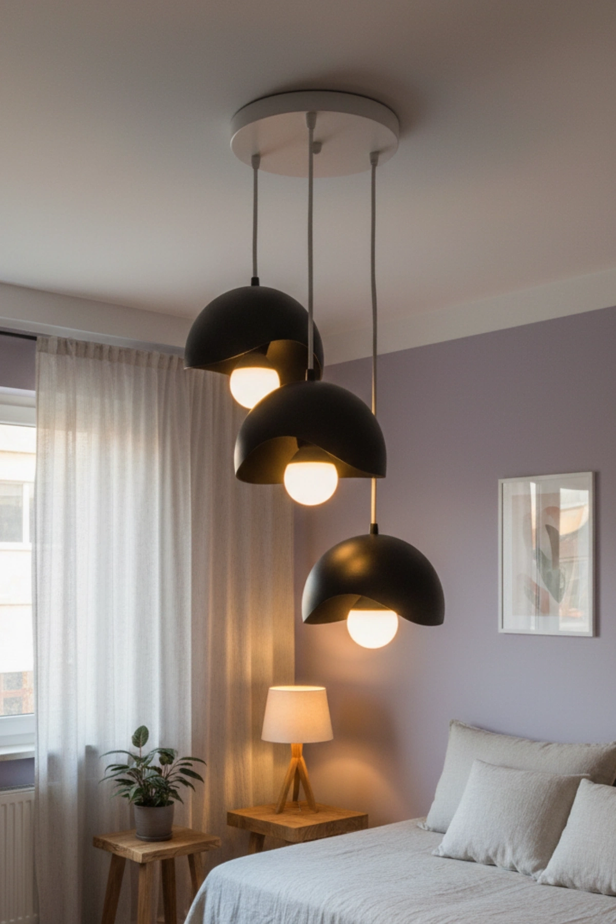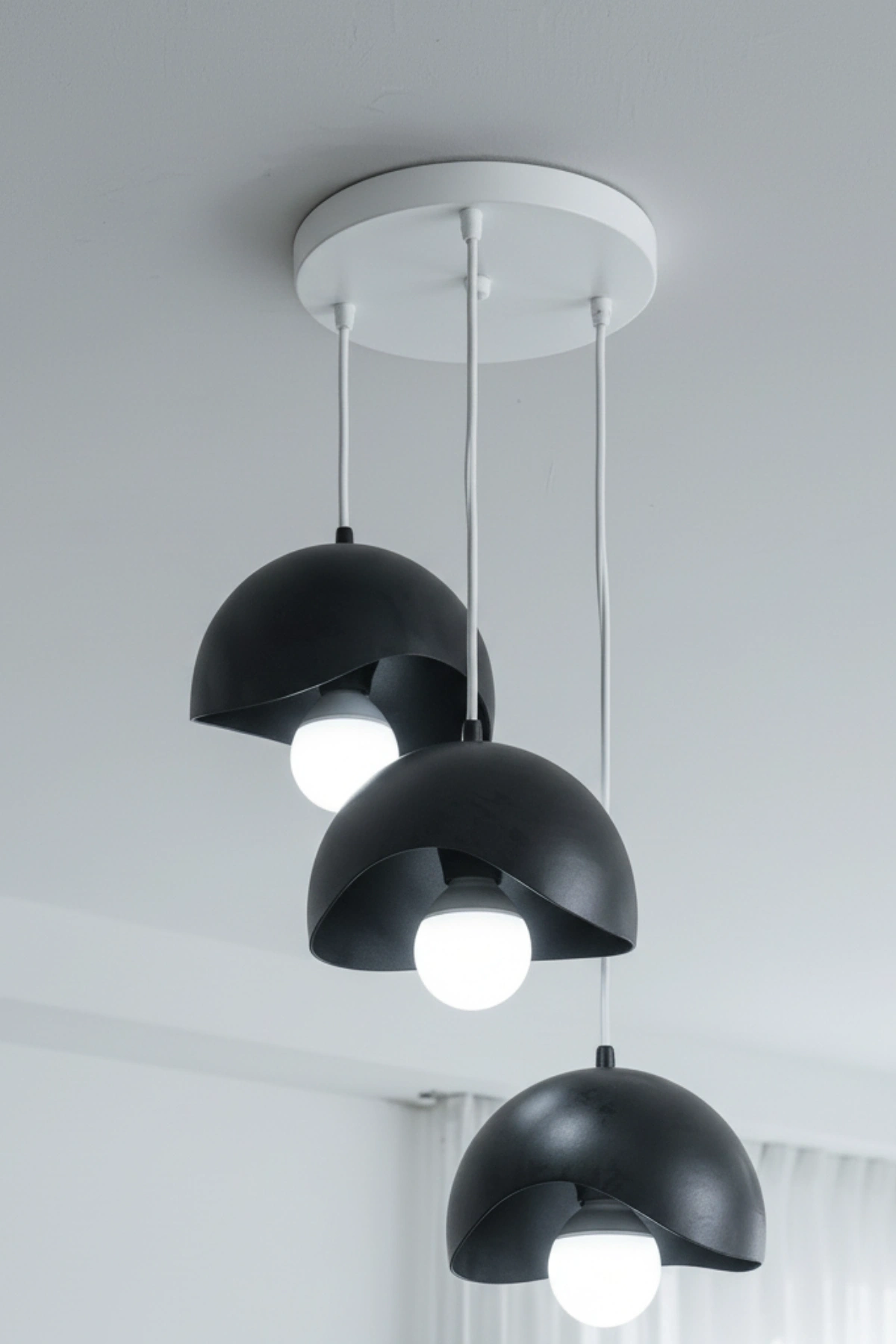 Siyah Beyaz Minimal Dalga Tasarım 3’lü Sarkıt Avize 25 x 20