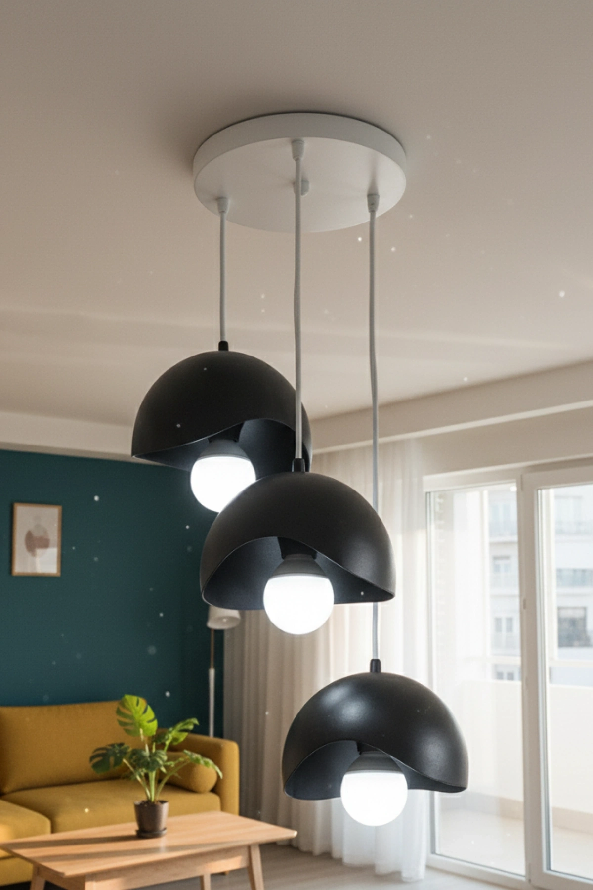 Siyah 3 Lü Geometrik Avize 25 x 25